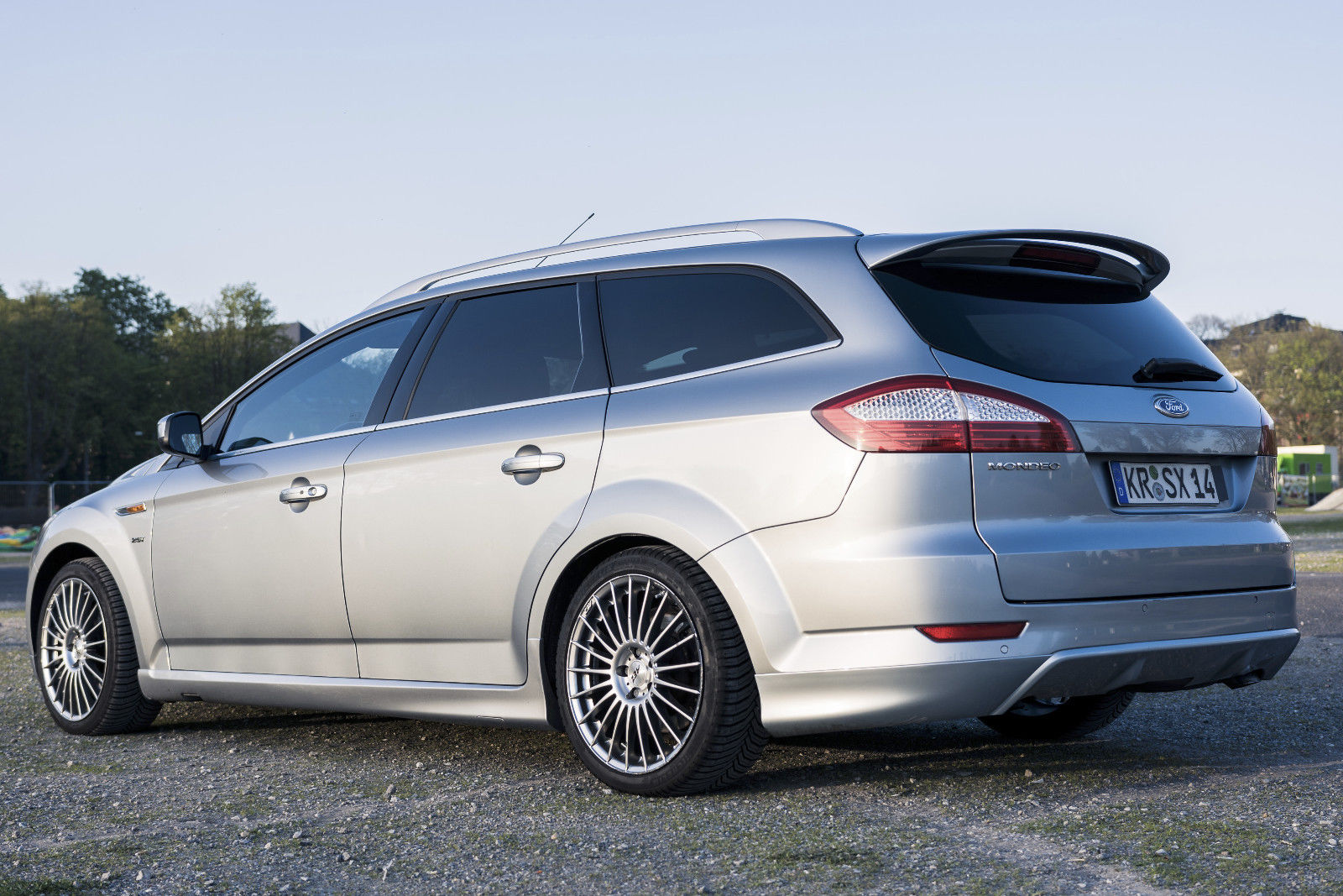 Nun zu meiner Frage: Warum ist das Auspuffrohr von dem silbernen Mondeo nach unten geneigt wie bei einem Diesel. Müsste es nicht nach hinten gerichtet sein?