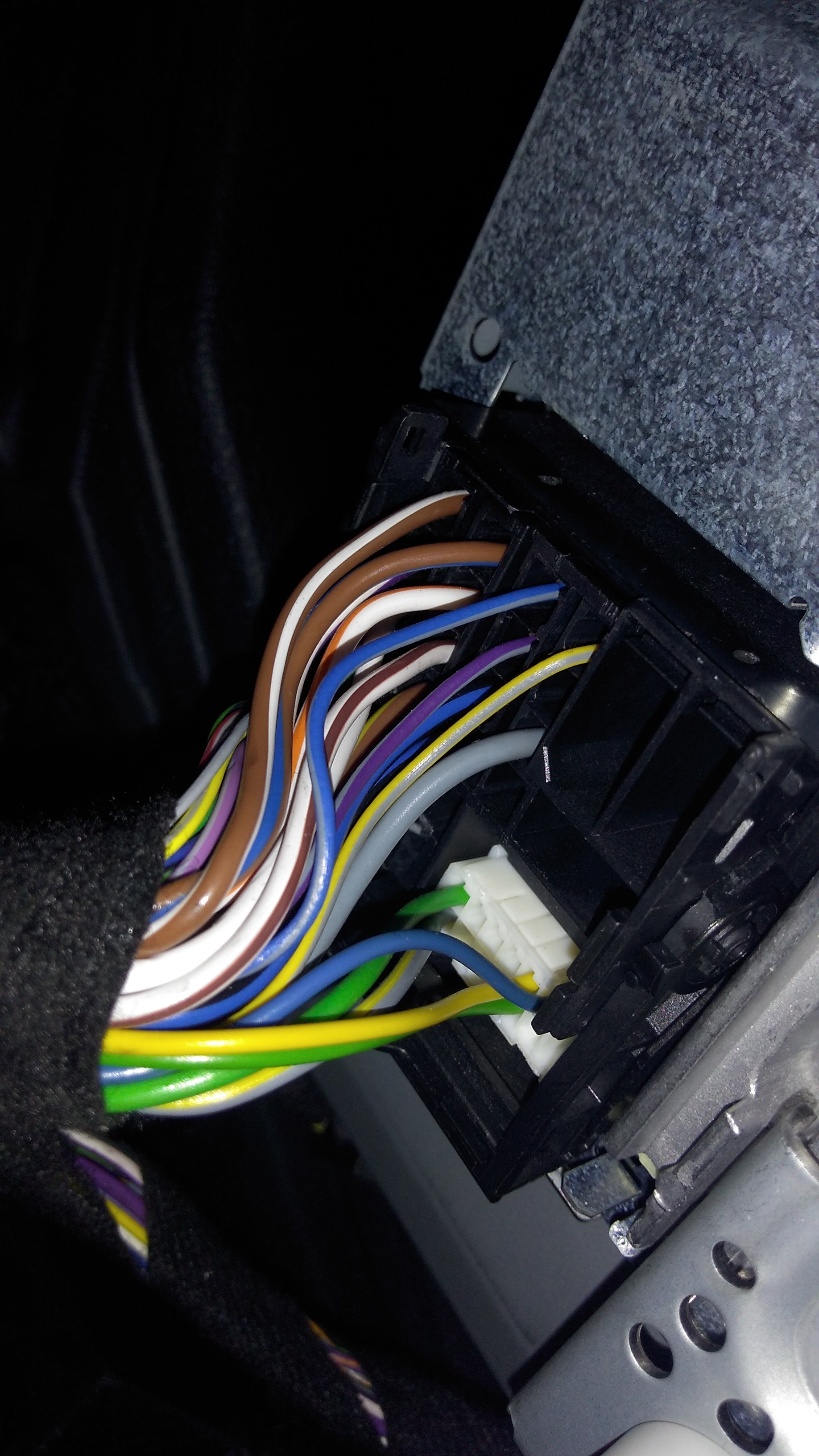Von diesem Stecker ist mir noch keine Pinbelegung untergekommen. Der Original-Subwoofer hat 4 Anschlüsse (für 2 interne Lautsprecher). Dann 4 Anschlüsse für die beim Premium-Sound separat angesteuerten vorderen Hochtöner. Bleiben noch 2 Pins und das könnte der Center-Lautsprecher unterhalb des Sonnenstandsensors sein.