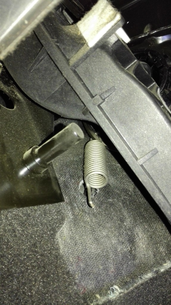 siehe da, am Flansch des Kupplunkspedals hängt eine Feder bei der das