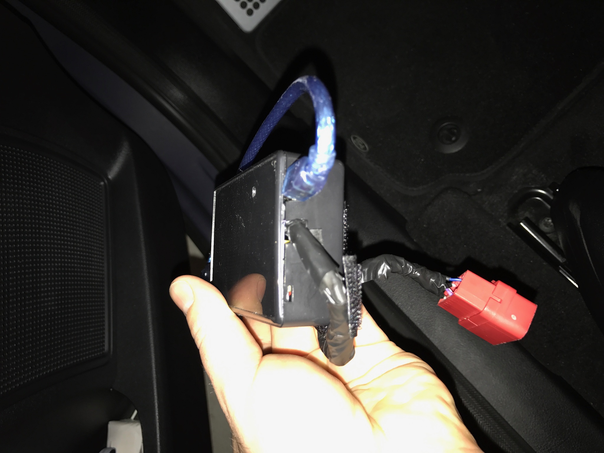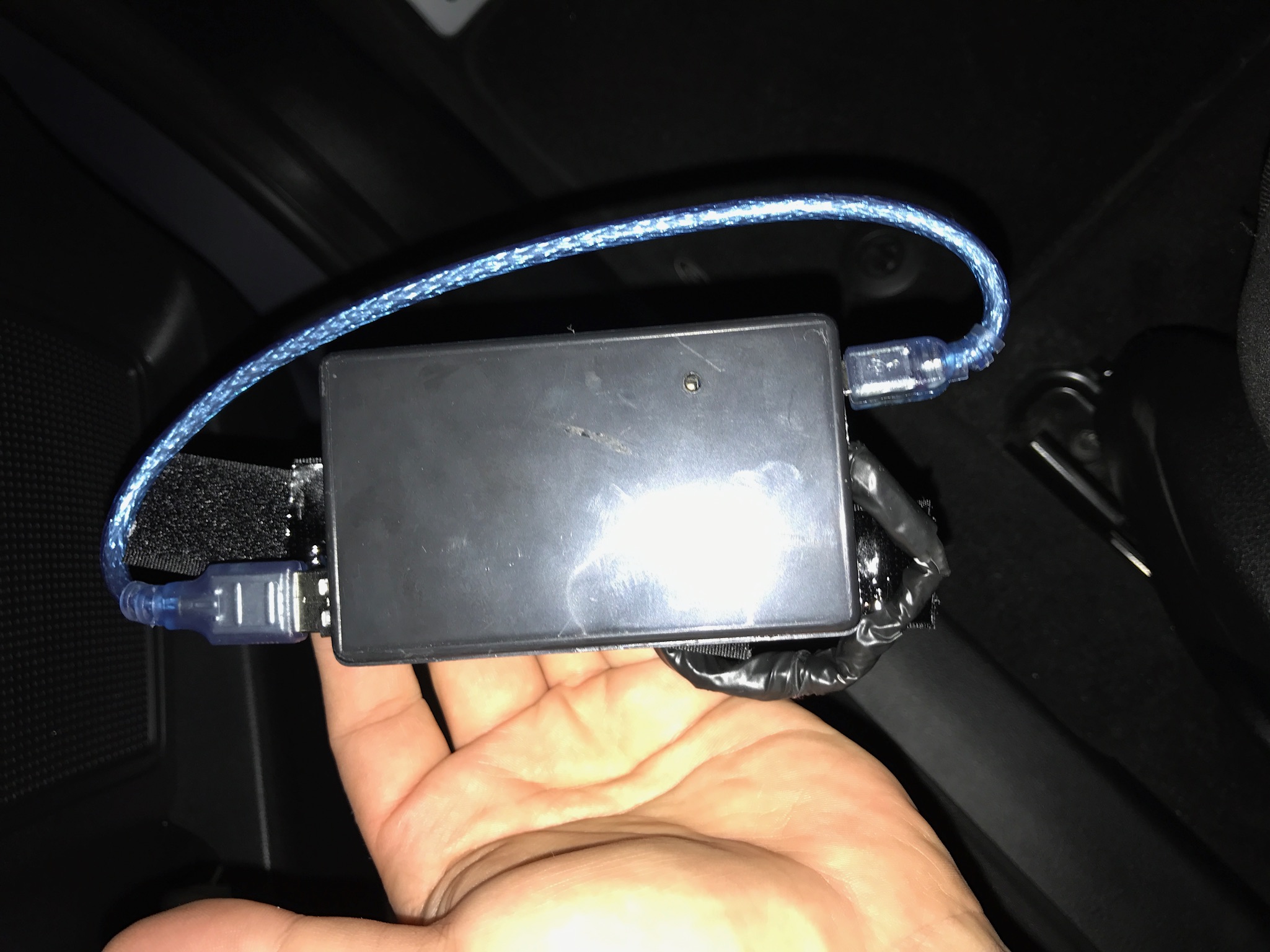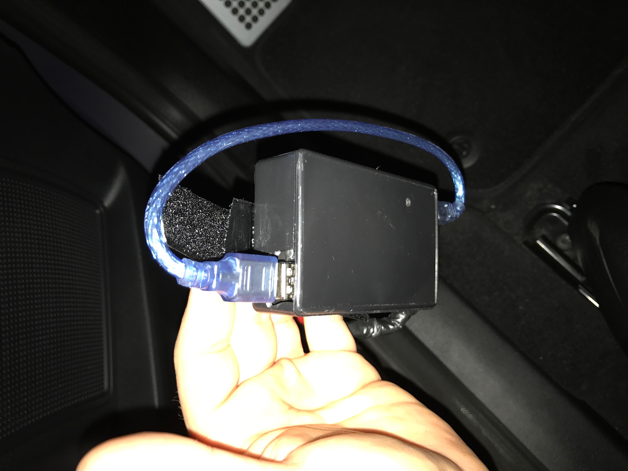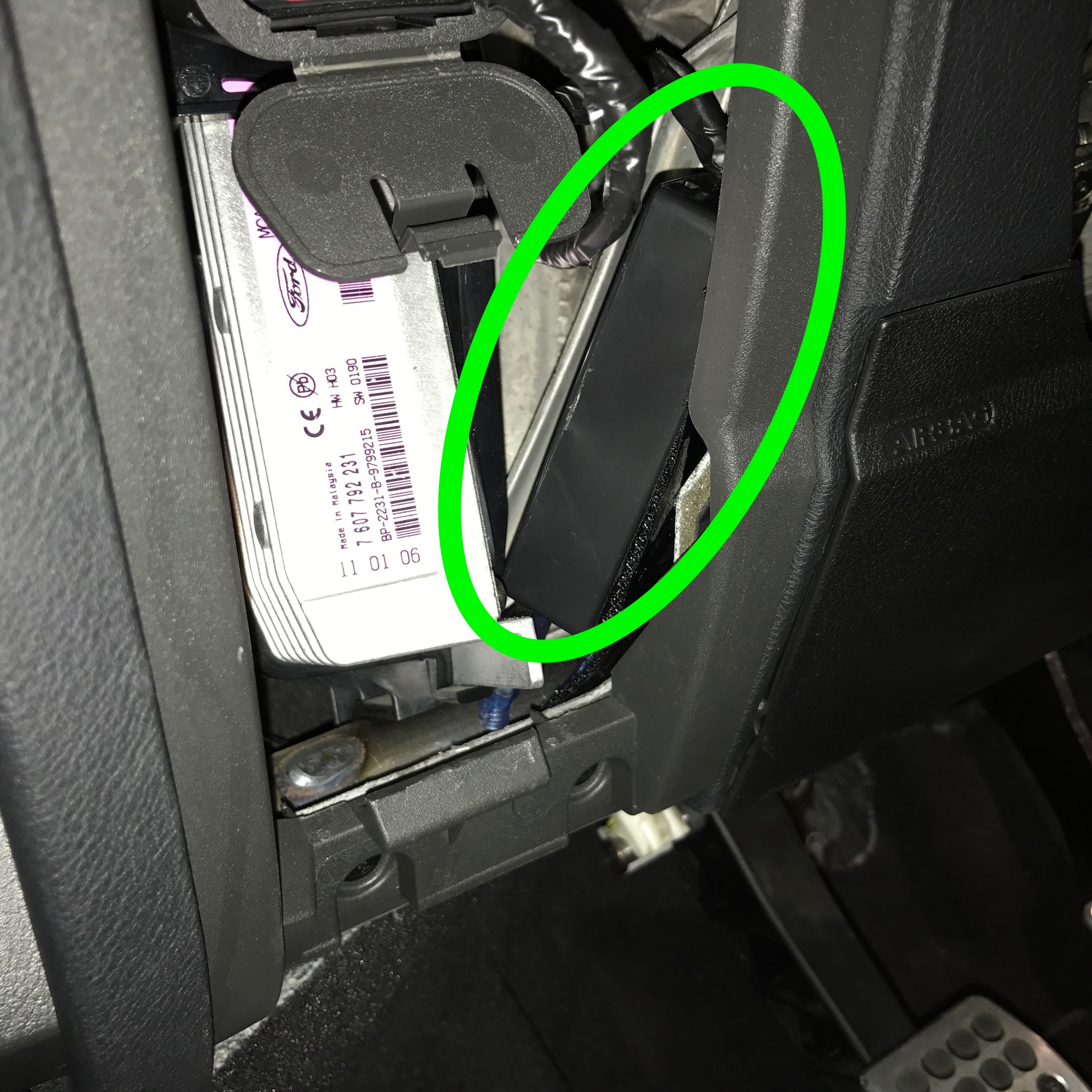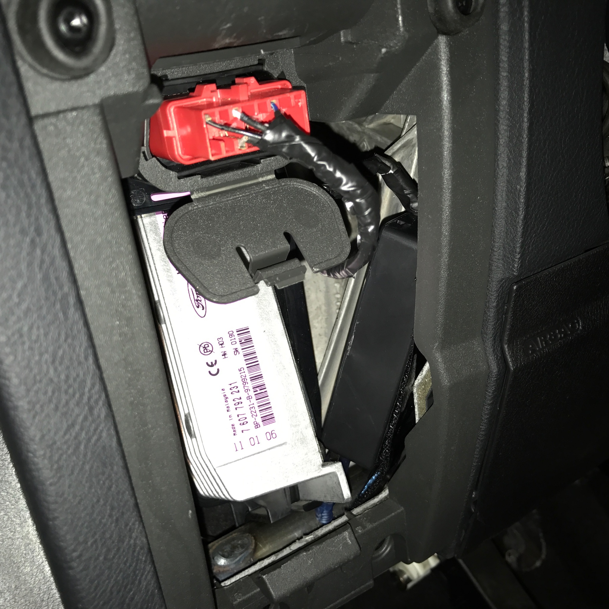 • Sieht aus wie ein schwarzer Kasten, etwa doppelt so groß, wie eine Zigarettenschachtel. Passt hinter Klappe oder Blende, bei S-Max/Galaxy passt es nicht, da muss man den OBD Stecker ausclipsen, damit dieser nach hinten rutschen kann. Hier ist die Klappe/die Abdeckung nämlich unmittelbar vor dem Port.