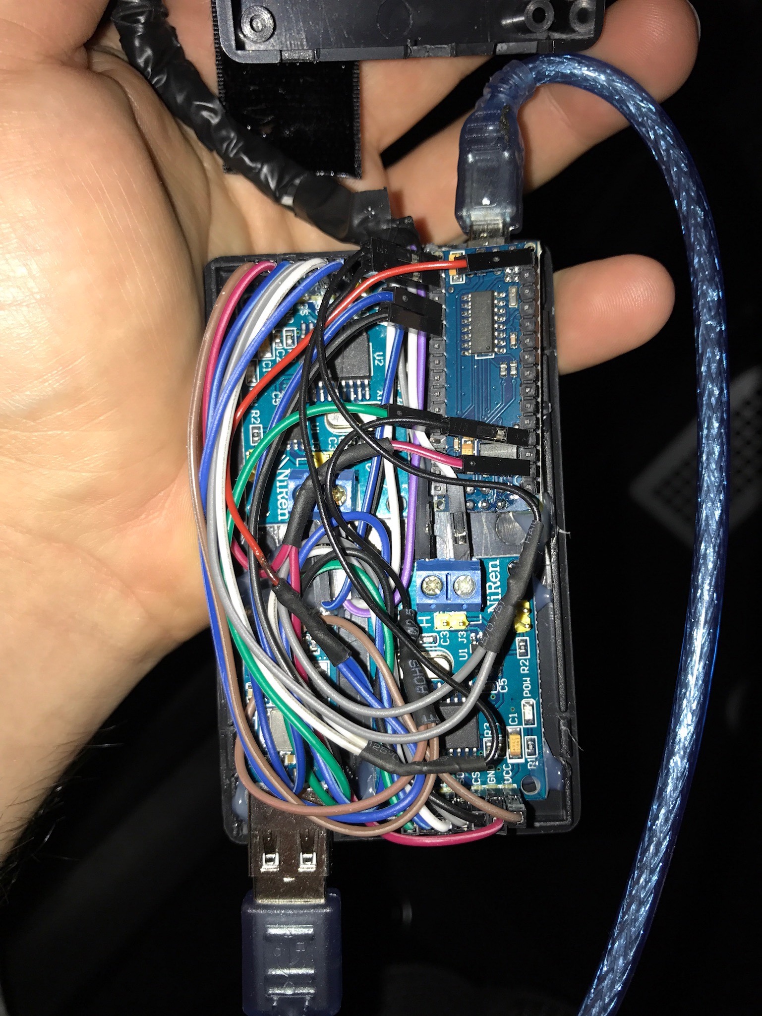Also Kabel mit Kupplung an den Stromspender löten, Kabel nach vorne ziehen, USB Power Supply ans Kabel löten und befestigen, USB Kabel ins USB Power Supply und dann ins Gateway.