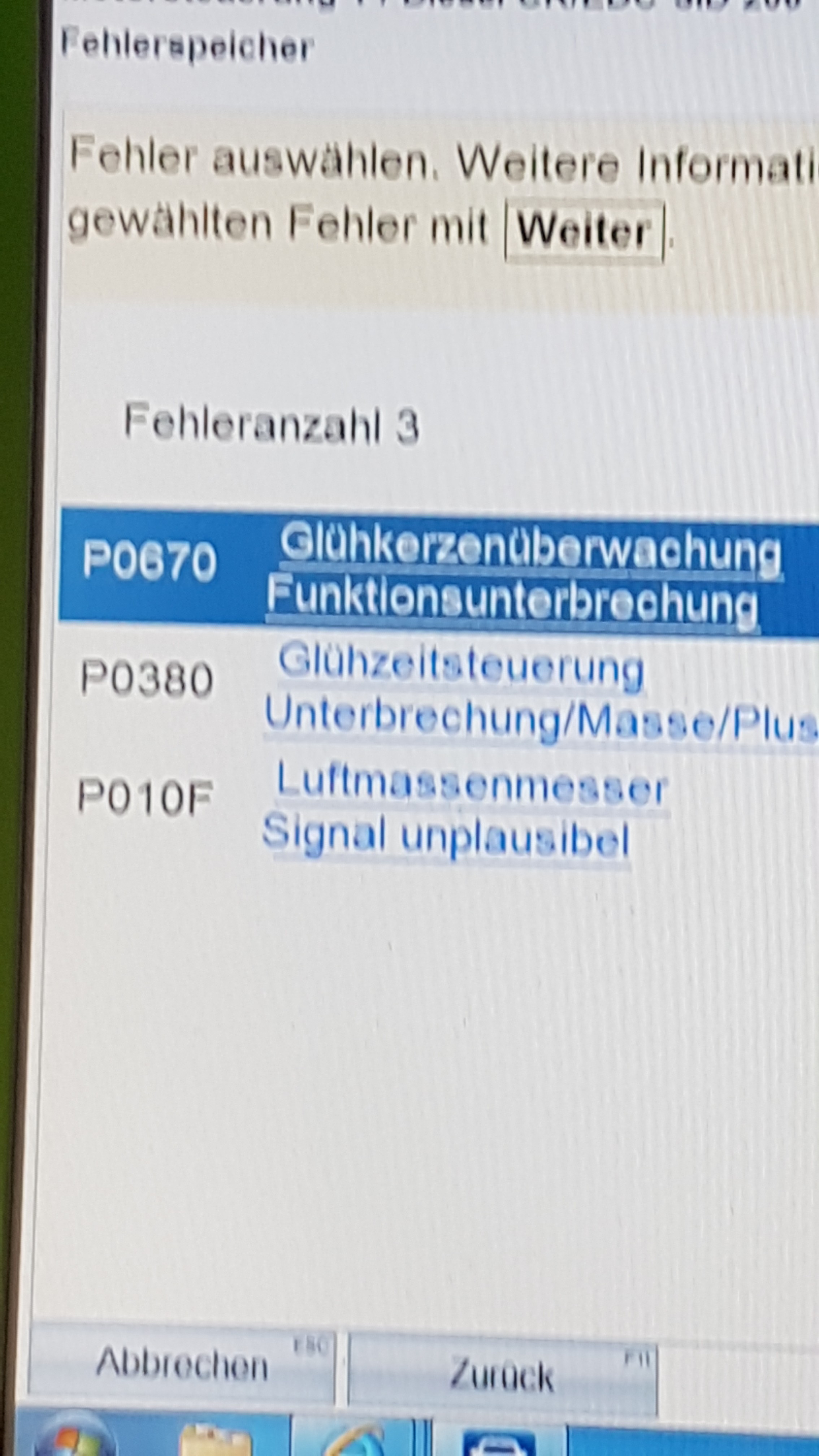 Wenn Ich dann den Motor abstelle und wieder die Zündung einschalte ist die Störung weg. Kommt aber bei der weiter fahrt wieder bei den selben Optionen.