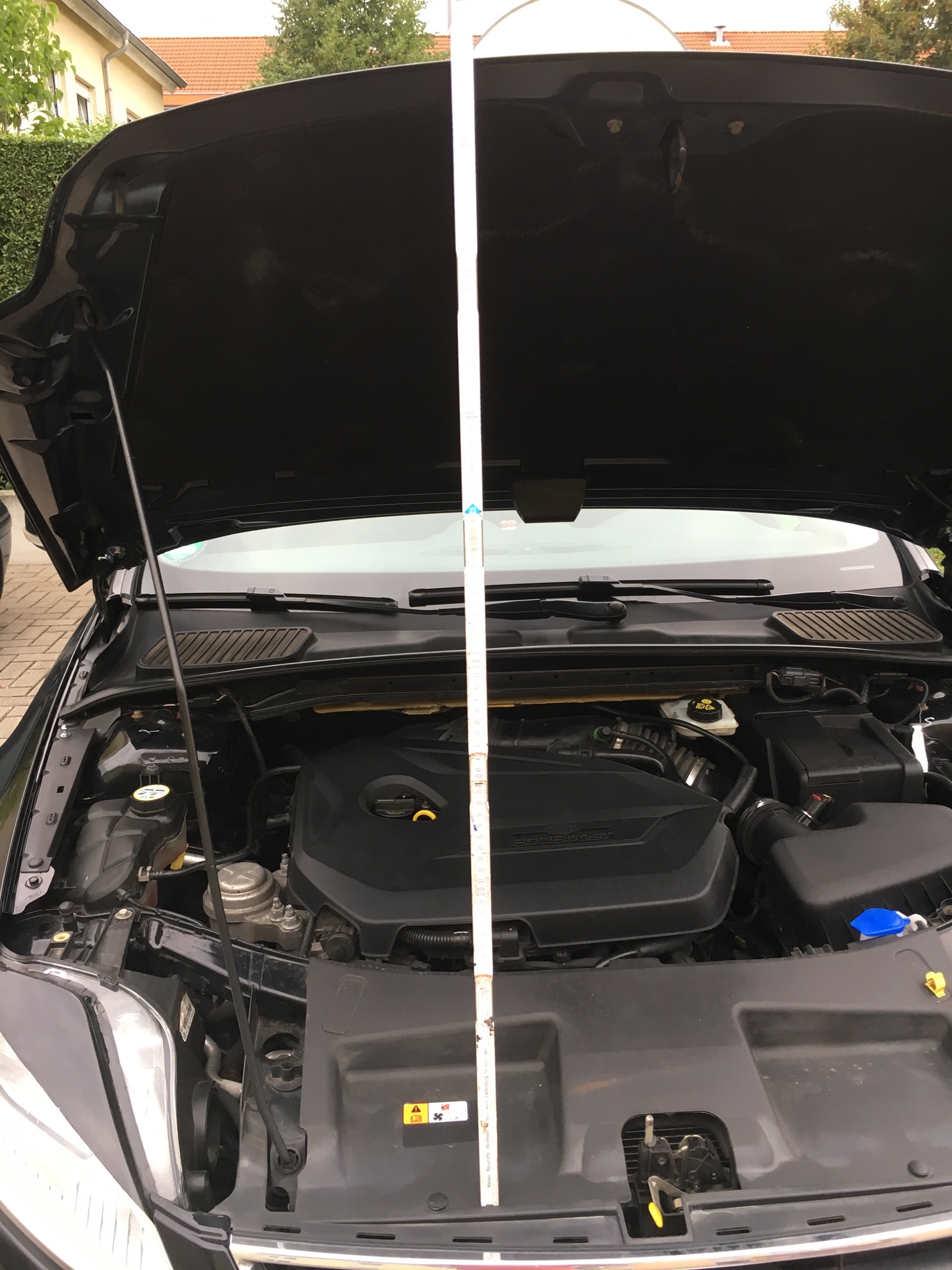 Wie man sieht geht die Motorhaube mit Aufsteller 96 cm auf. Mit den Lifter 117 cm. Das ist bis zum Anschlag.