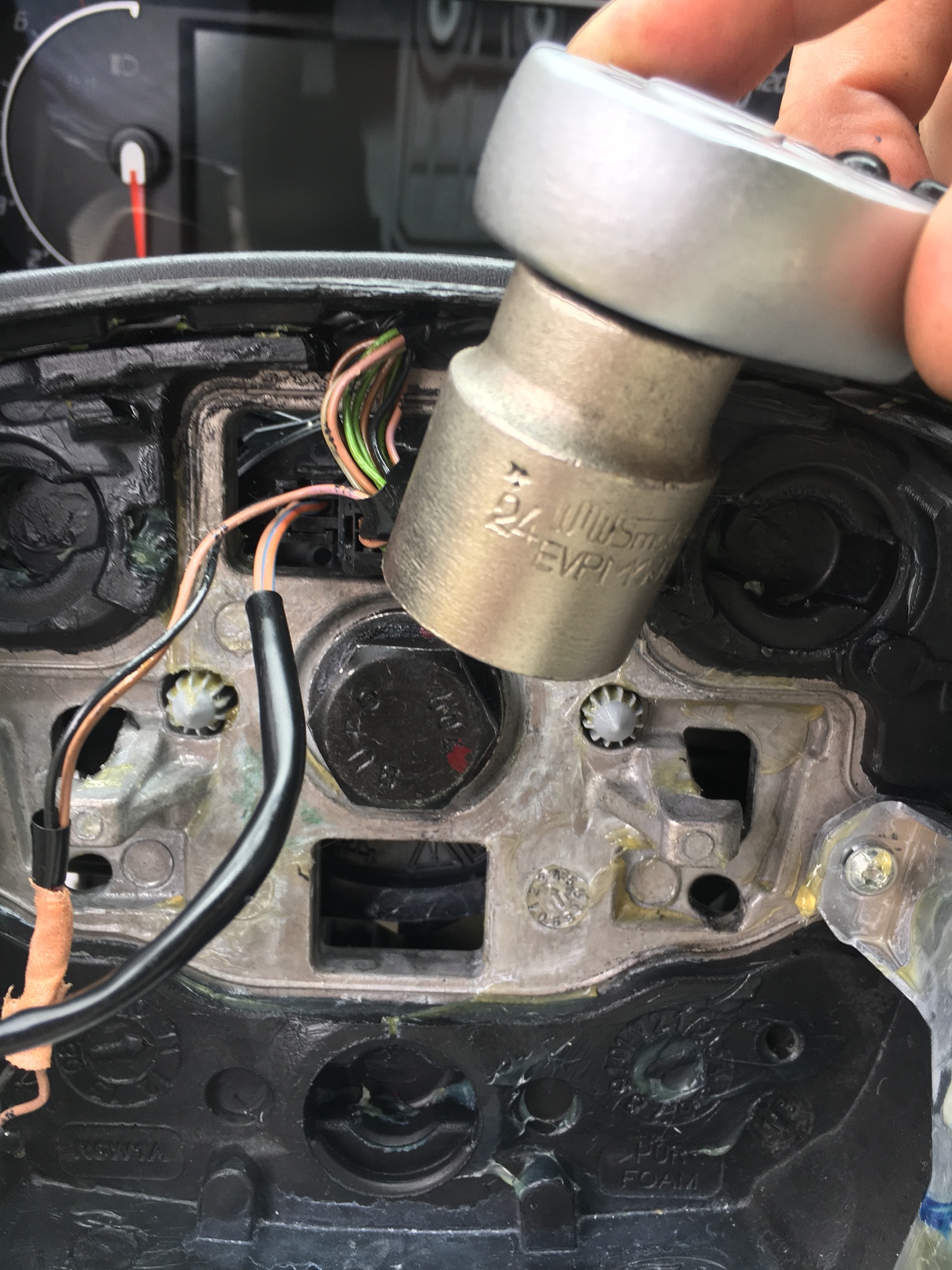 2. mit 24 Nuß und Ratsche muß Lenkrad ab, sichtbare Stecker natürlich entfernen