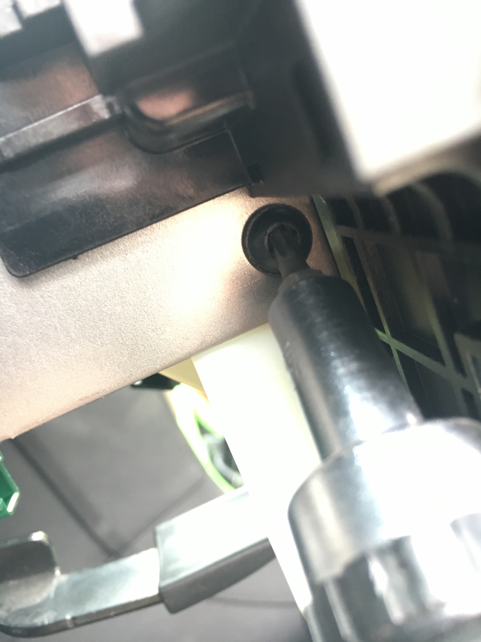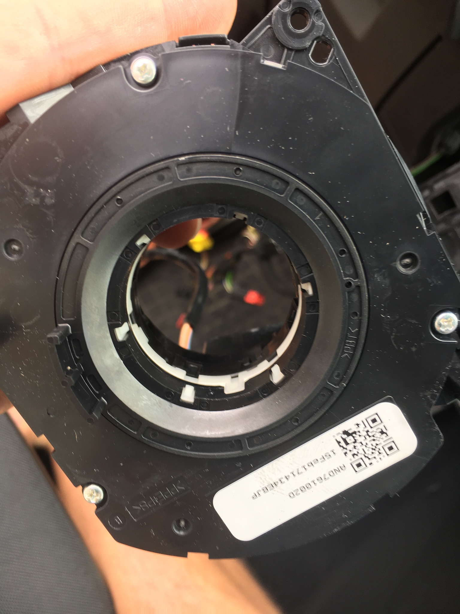3. Wickelfeder mit 4 Schrauben entfernen, einfach nach oben abziehen. Ist auf den Lenkerstock mit Steckern fest