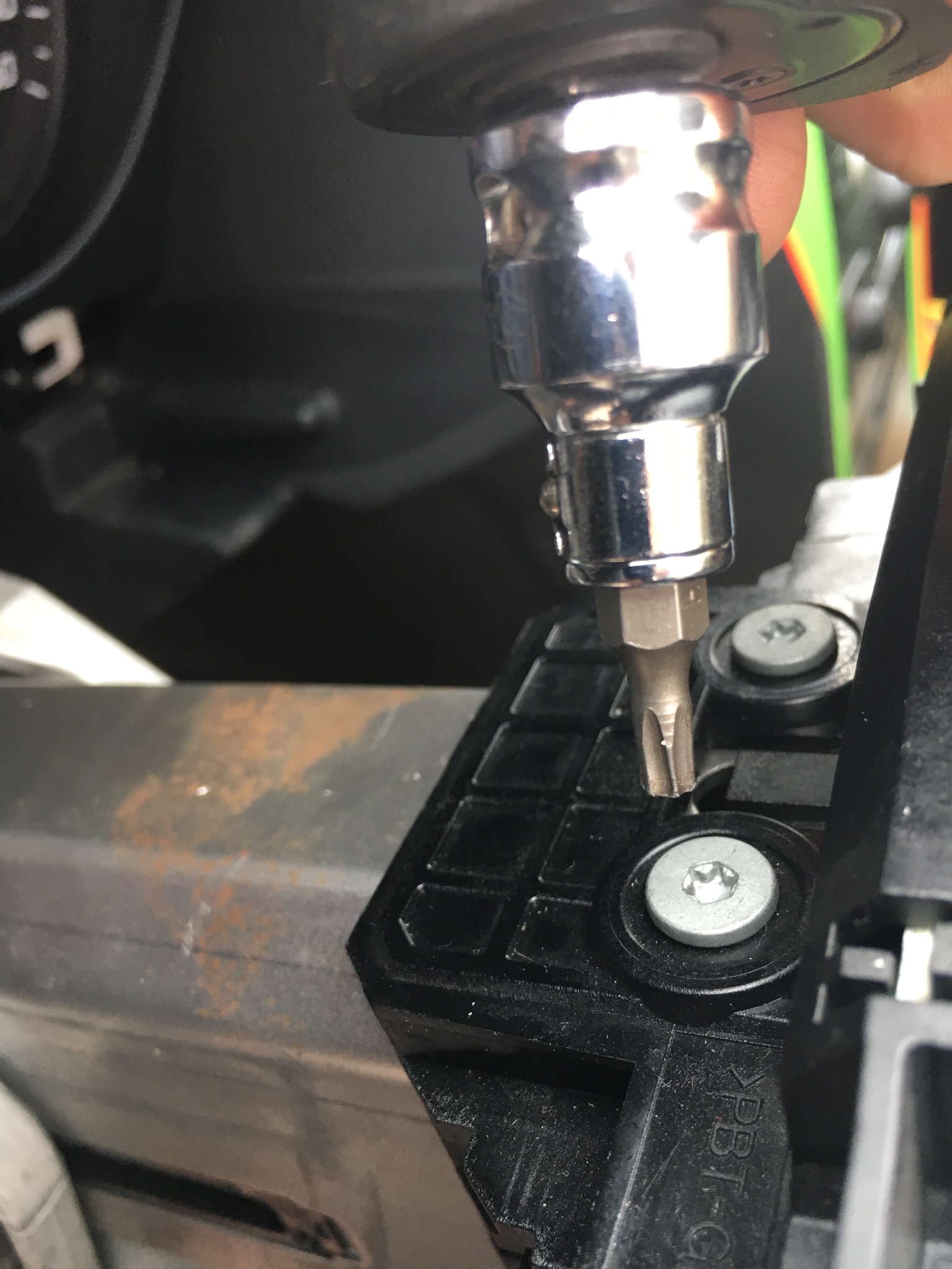 4. Lenkerstock mit Blinker und Wischhebel entfernen, 2 Torx obendrauf, rechts und links jeweils eine