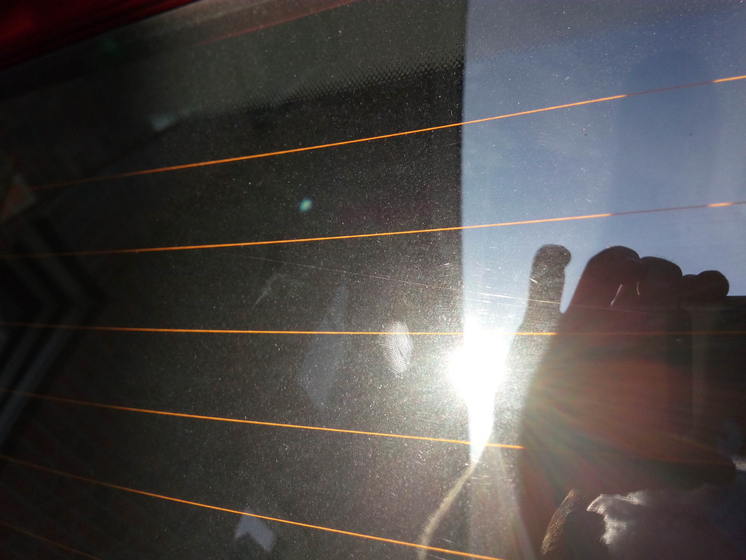 Die Kratzer in der Heckscheibe habe ich heute erst gesehen als die Sonne tief stand. Hab ich noch an keinem Auto vorher gesehen. Ich verstehe das nicht.