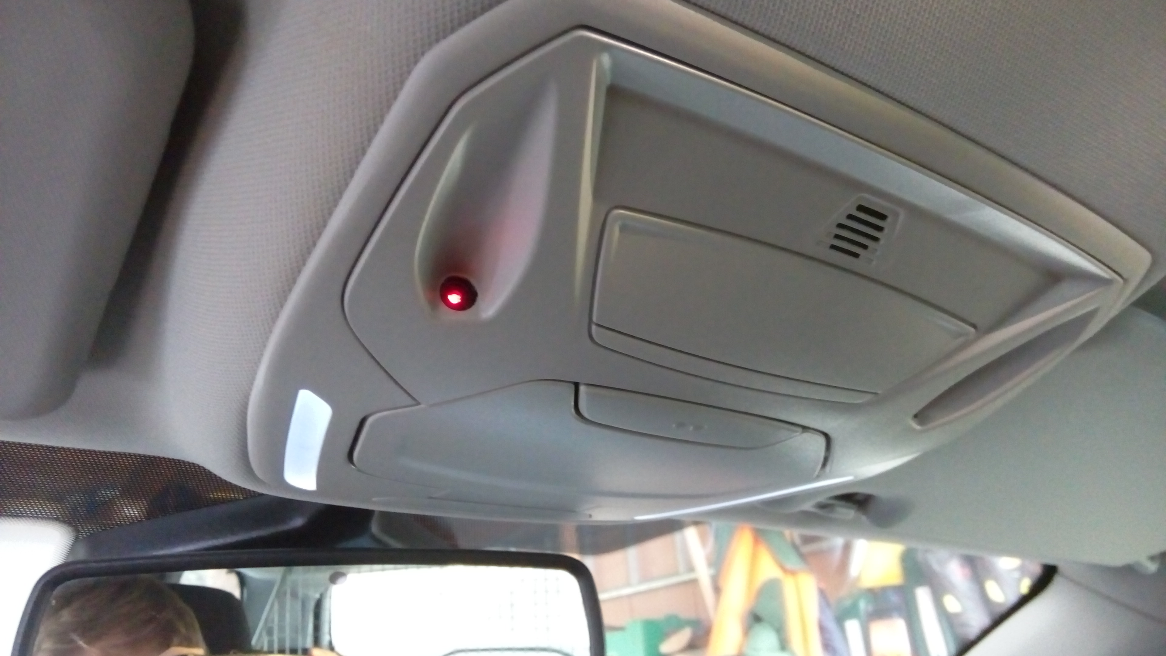 Zuerst stand die Frage im Raum, wo hin mir der Anzeige bzw. LED. Ein Loch in die Mittelkonsole bzw. Kombiinstrument bohren kam für mich nicht in Frage. Die Lösung mit dem beleuchteten Zigarettenanzünder auch nicht, da ich dieses Fach so gut wie nie geöffnet habe. Dann fiel mir ein, dass ich die LED oben in der nähe des Brillenfachs anbringen könnte.