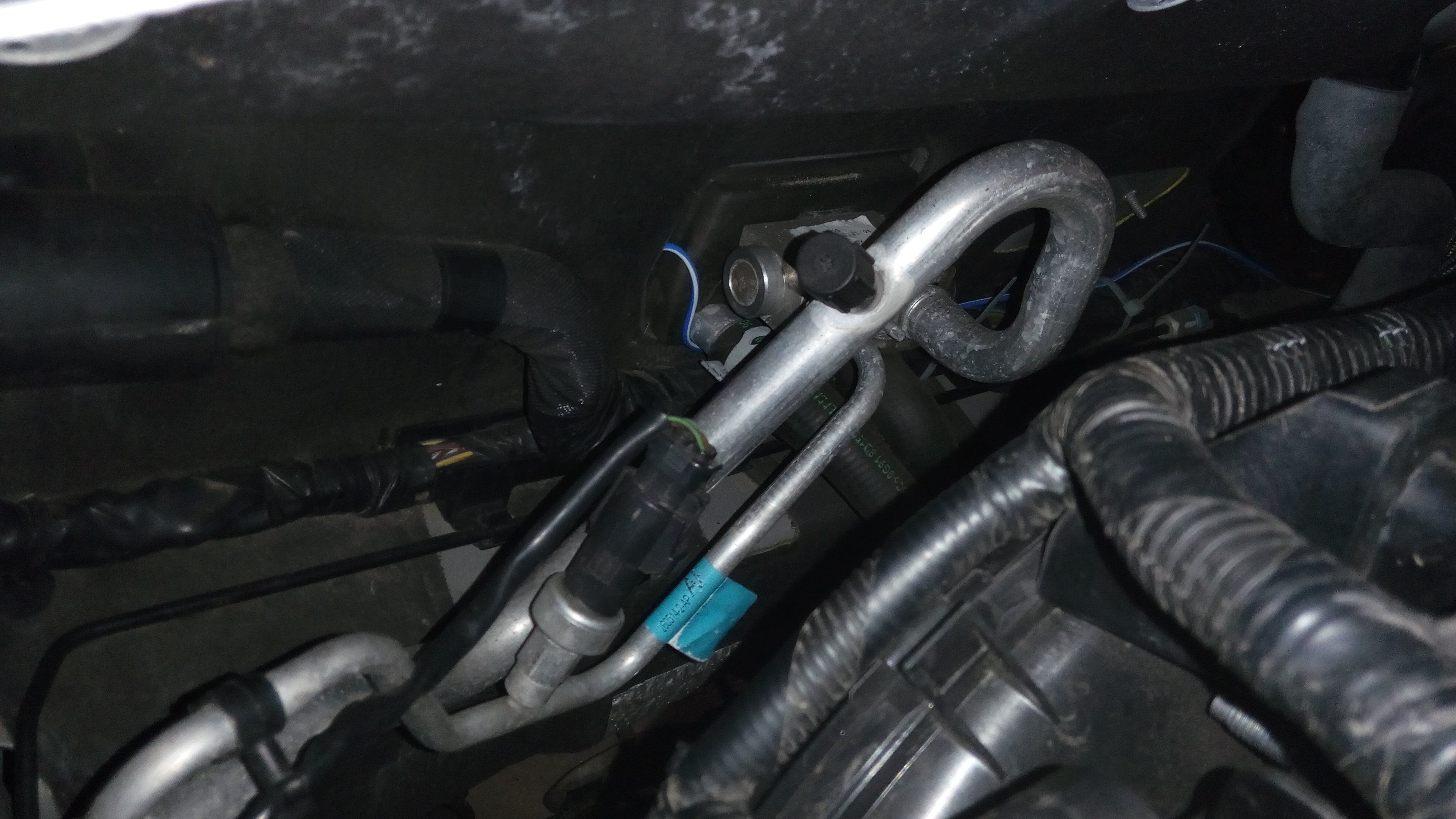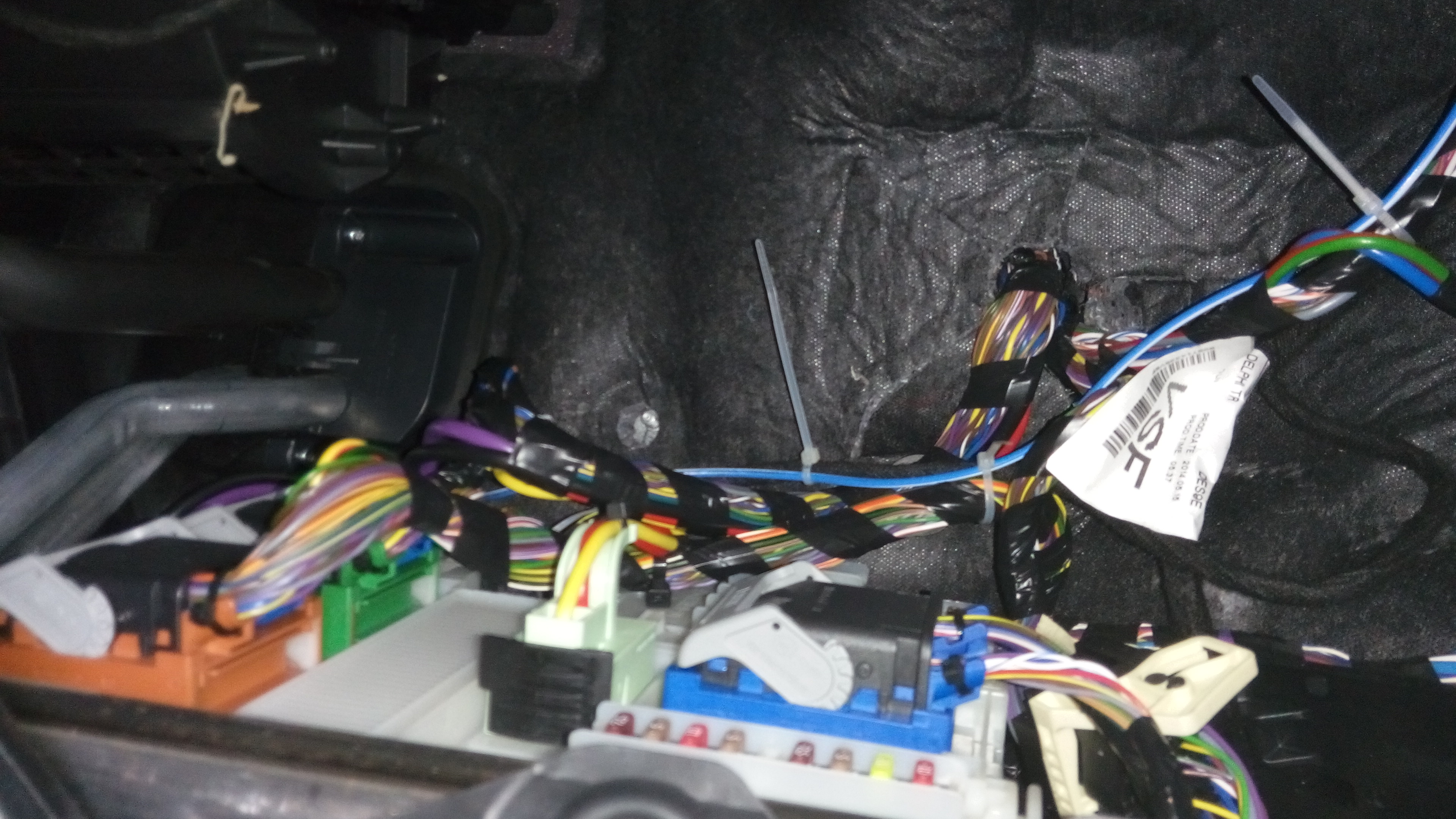 Am nächsten Tag ging es weiter. Zuerst habe ich das Handschuhfach ausgebaut um von dem Innenraum in den Motorraum zu gelangen. Leider hier eine Enttäuschung, auf den Bildern welche ich vorher im Internet gefunden Hatte waren mehrere Durchgänge zu sehen, bei mir hab es nur einen und dieser war vergossen. Also bin ich durch den Durchgang der Klimaanlage gegangen, nicht sonderlich schön, aber einfach. ![]()