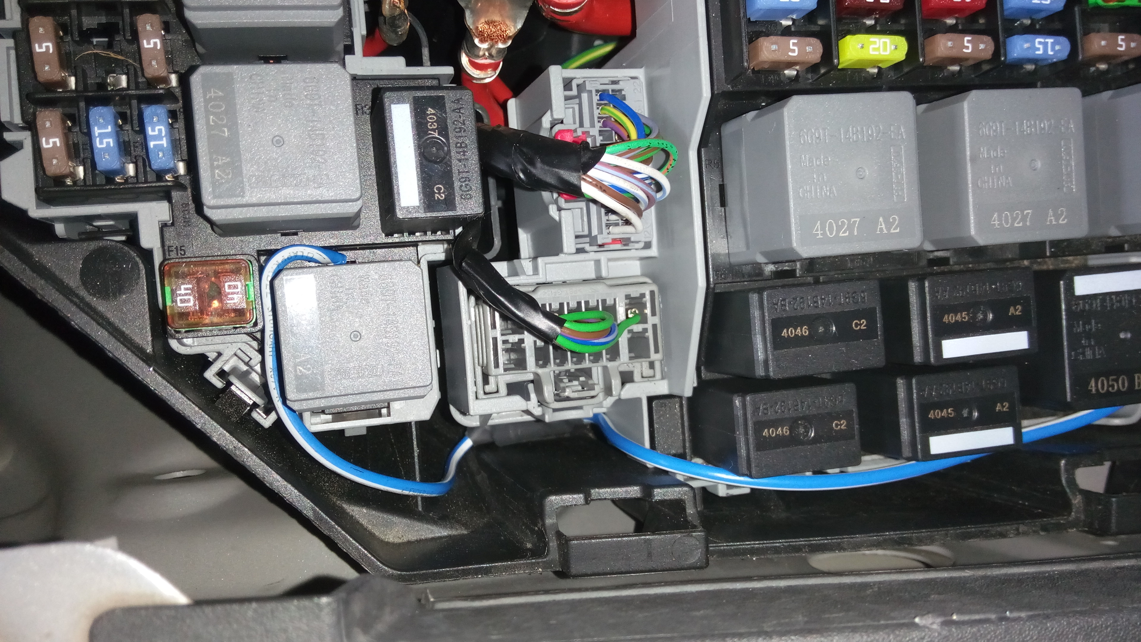 Von dort aus zum Sicherungskasten vorn links. Zur Sicherheit habe ich noch eine 50mA Feinsicherung eingelötet. Dann zuerst das Kabel an die Batterie gehalten um zu überprüfen ob auch alles funktioniert. Geht...![]()