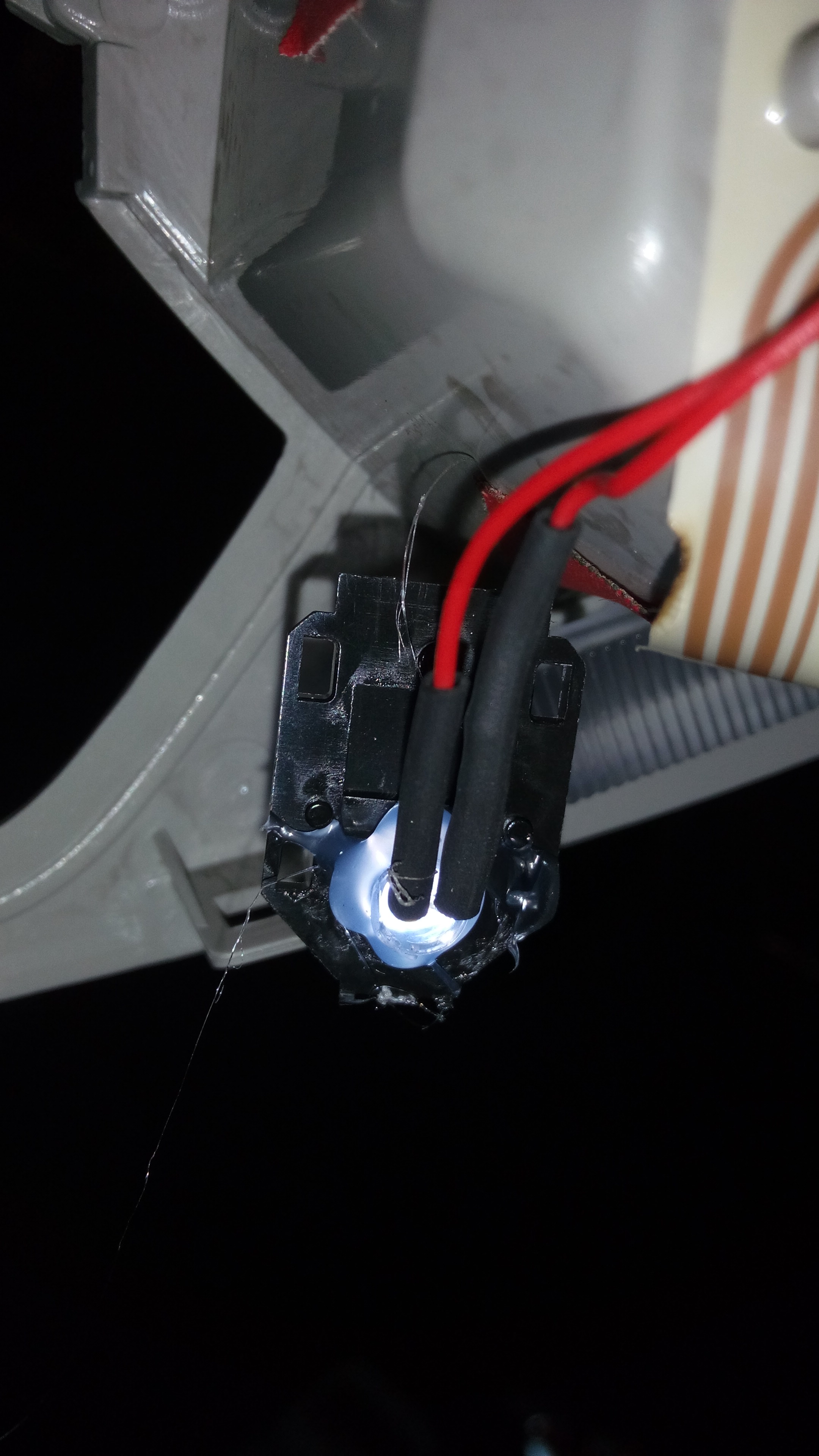 Dazu habe ich die LED mit Heißkleber in die originale Halterung eingeklebt. ![]()