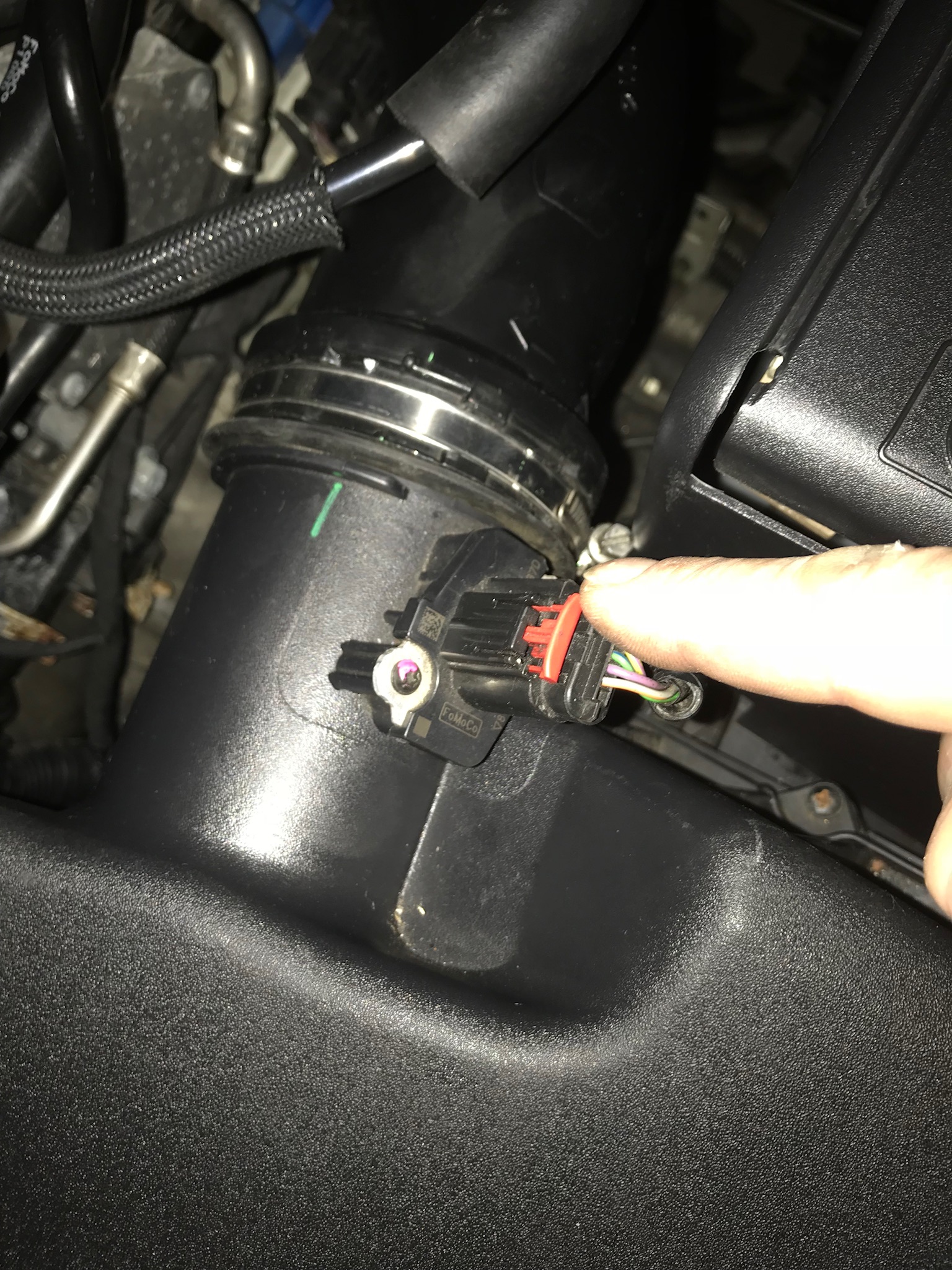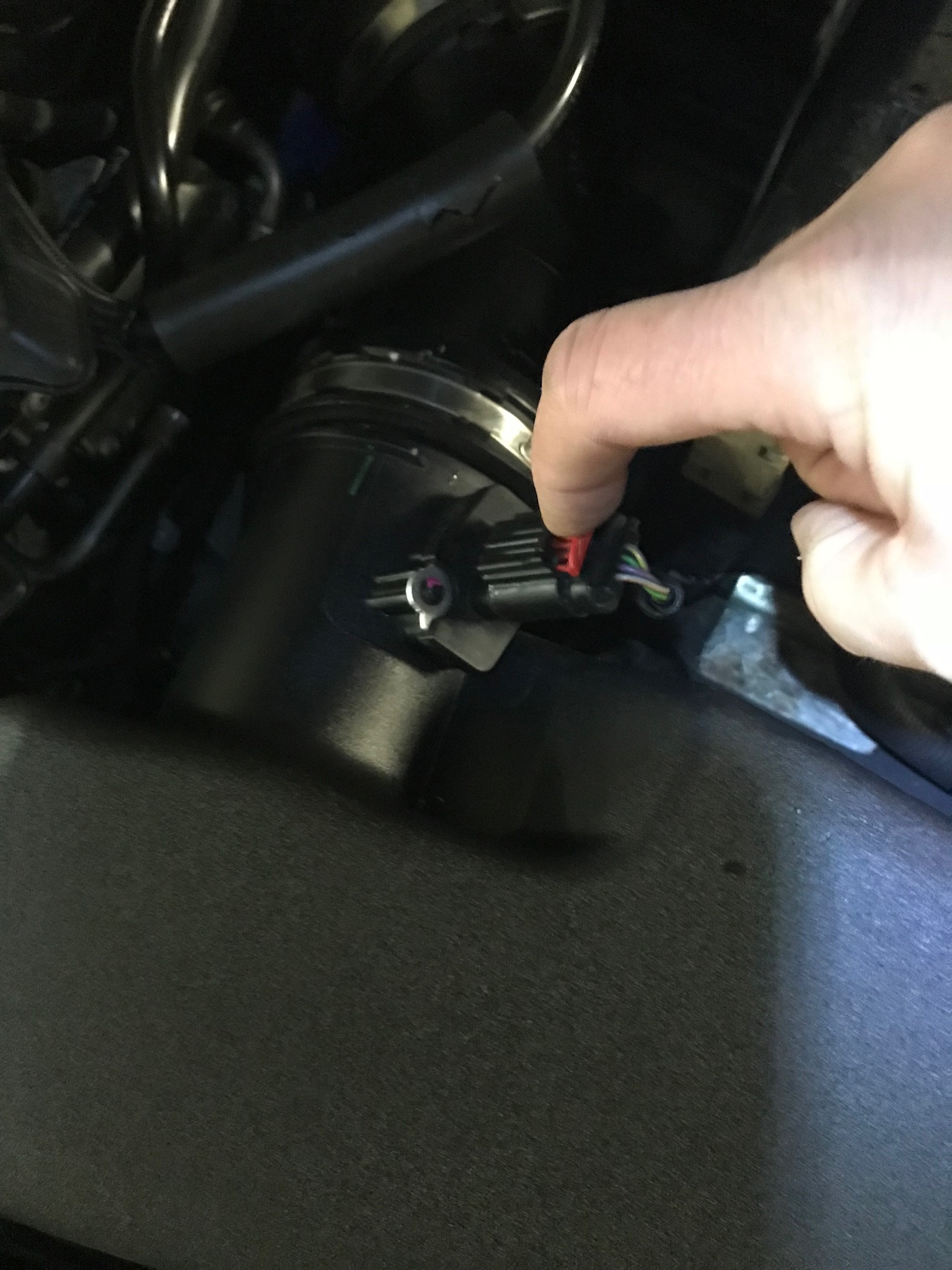 4. Stecker für Luftmengenmesser abstöpseln ( rote Verriegelung nach oben ziehen und dann den Stecker entfernen)