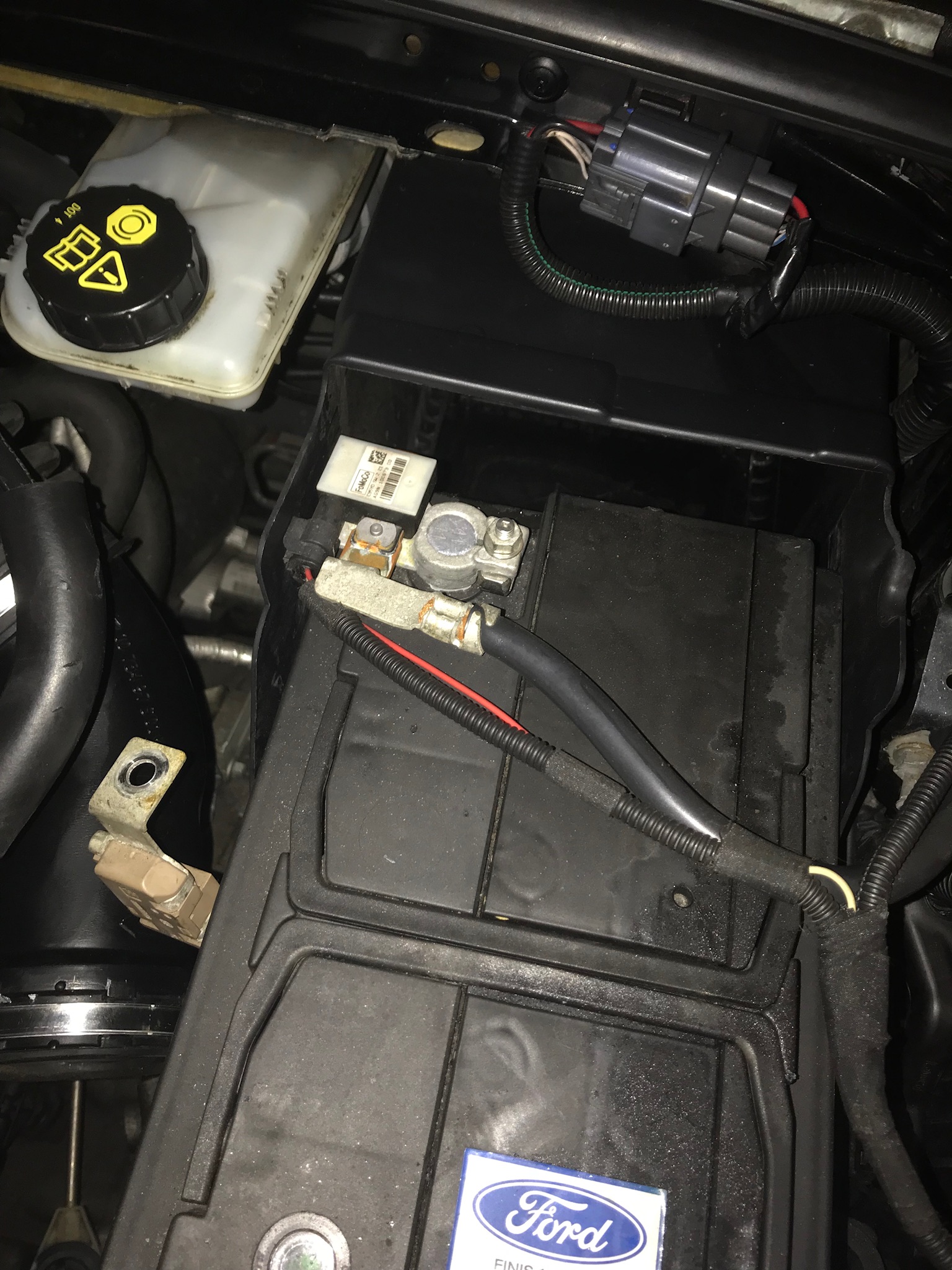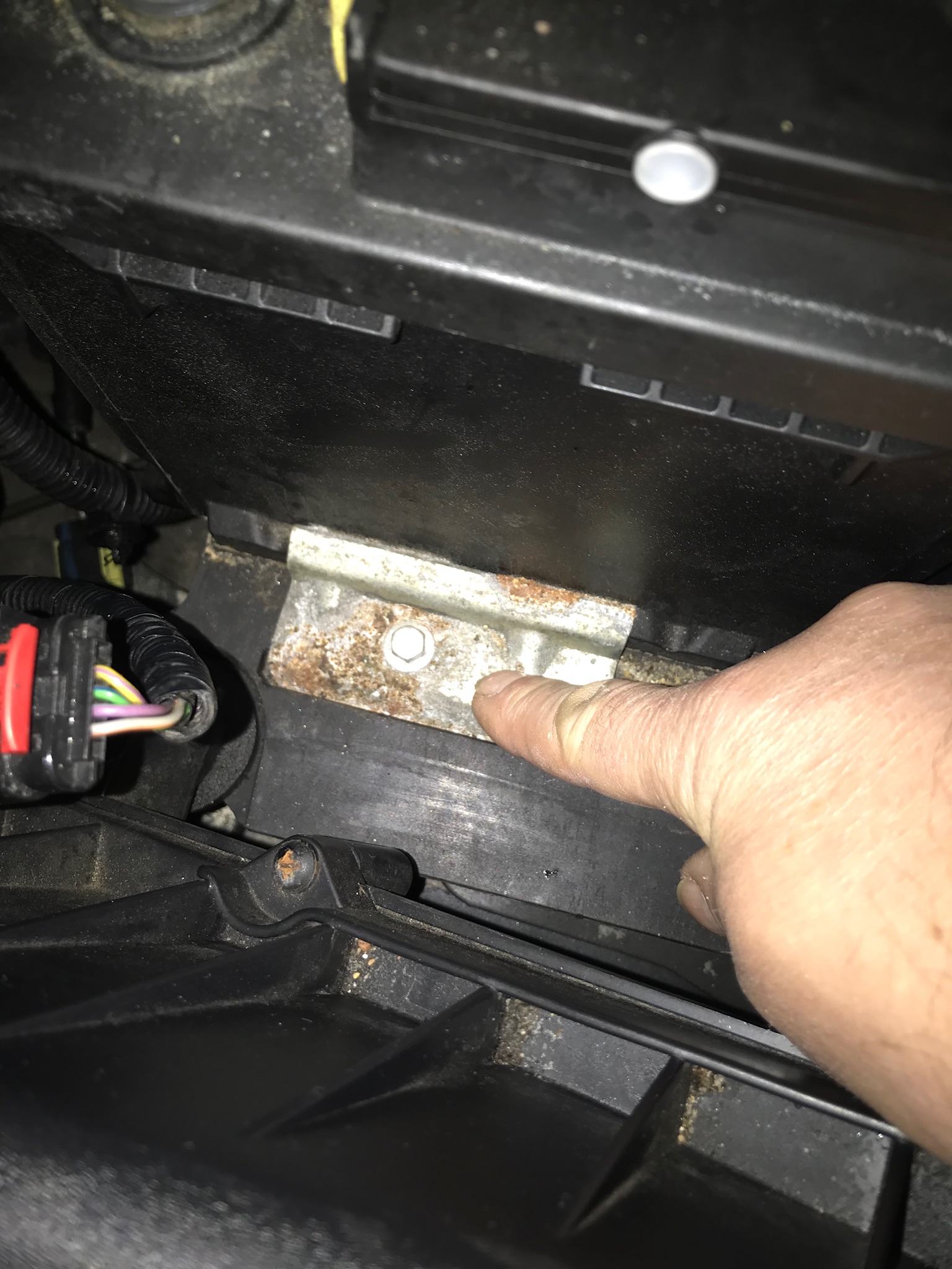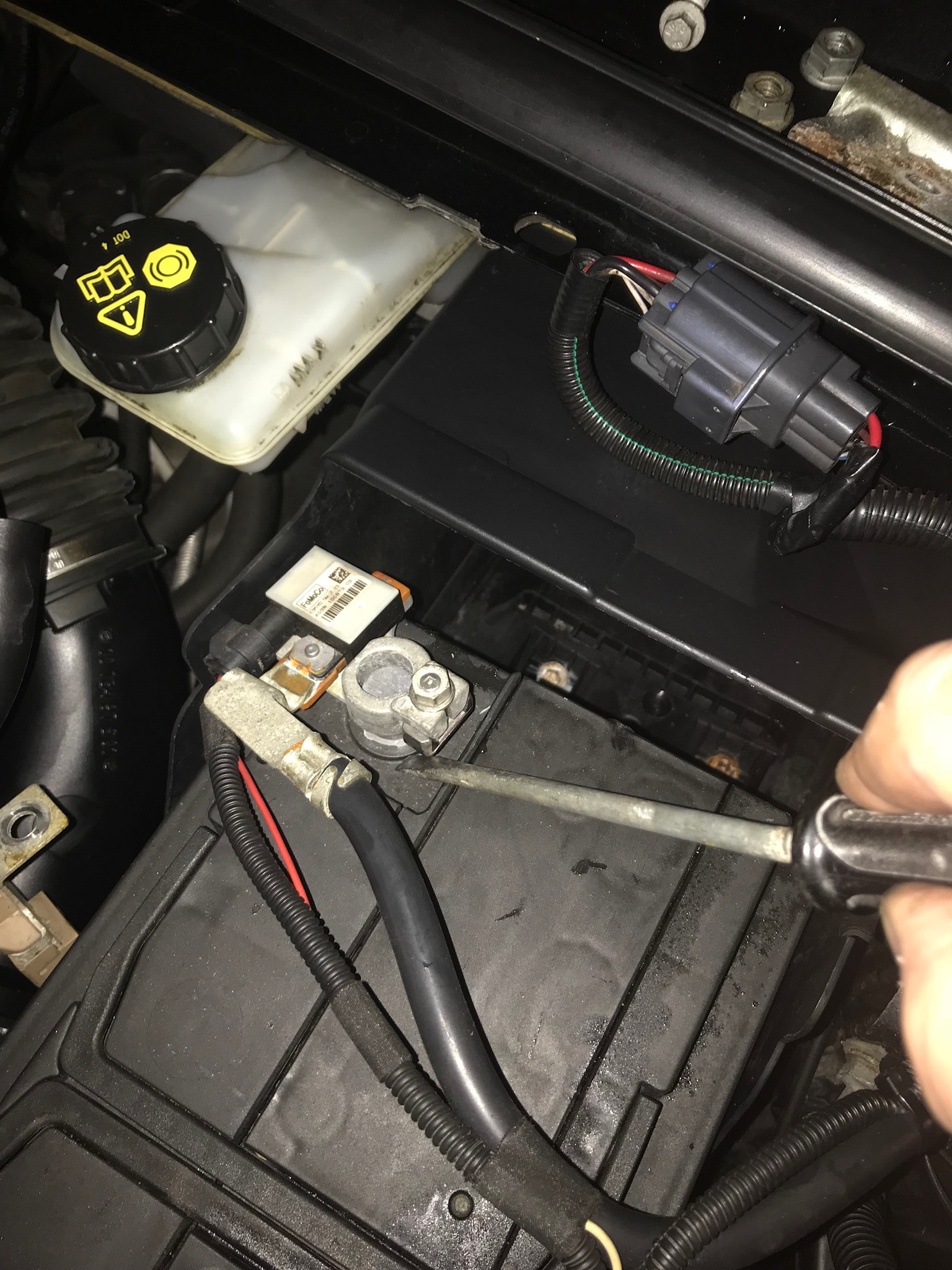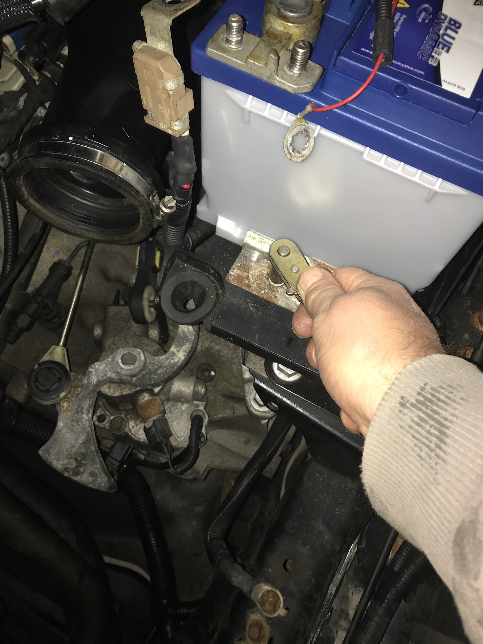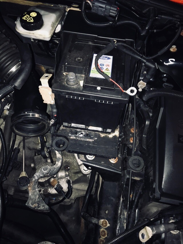 10. Batterie nach vorne herausziehen bis der Minuspol sichtbar ist. Danach mit 10er Nuß entfernen