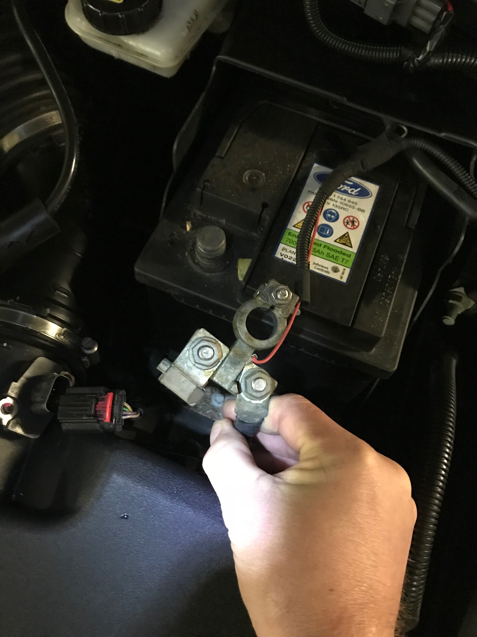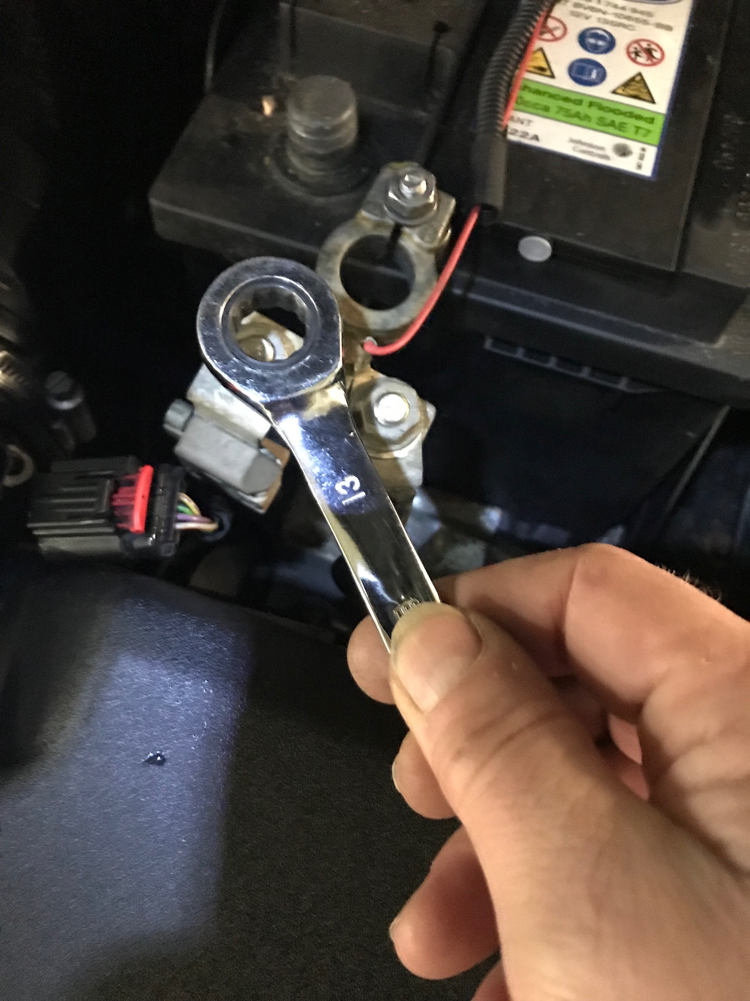 3. Zuführende Pluskabel entfernen mit 13er Nuß und danach Plusklemme abschrauben mit 10er Nuß