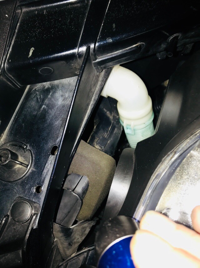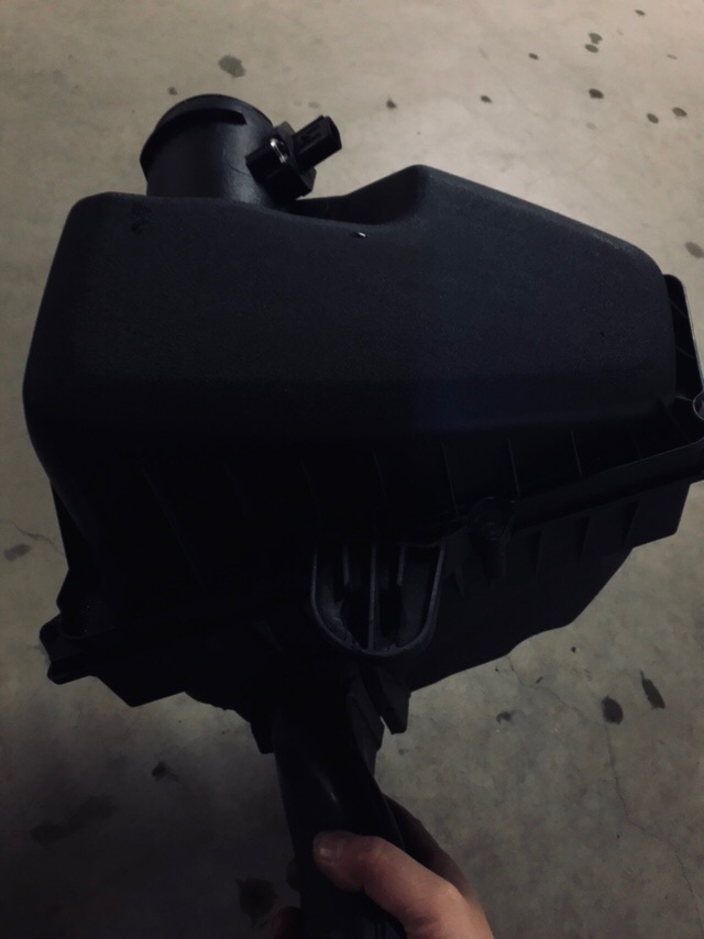 7 . Jetzt kompletten Luftfilterkasten an der Batterieseite aus der Gummiverankerung heben und dann an der Vorderseite. Das Teil ist nur gesteckt und muß auch nicht geöffnet werden