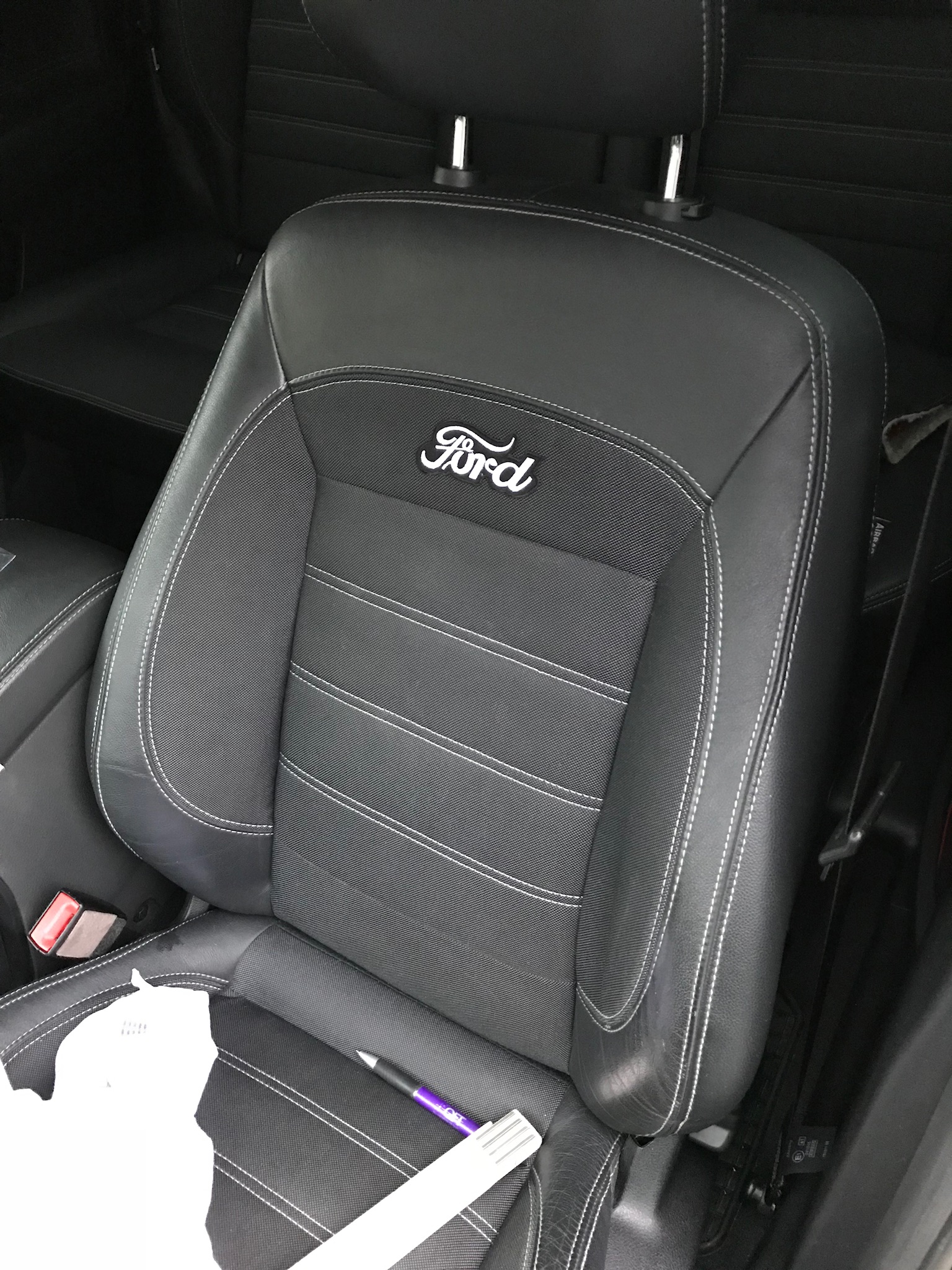 Wollte ja ursprünglich das Fordlogo in die Sitze sticken lassen. Aber einige Nähereien verwiesen auf Markenrechte usw. Also kurzerhand Aufbügler gekauft und fertig war die Sitzlehne. Vorher, Angepasst und Nachher. Das ganze vier mal. ![]()