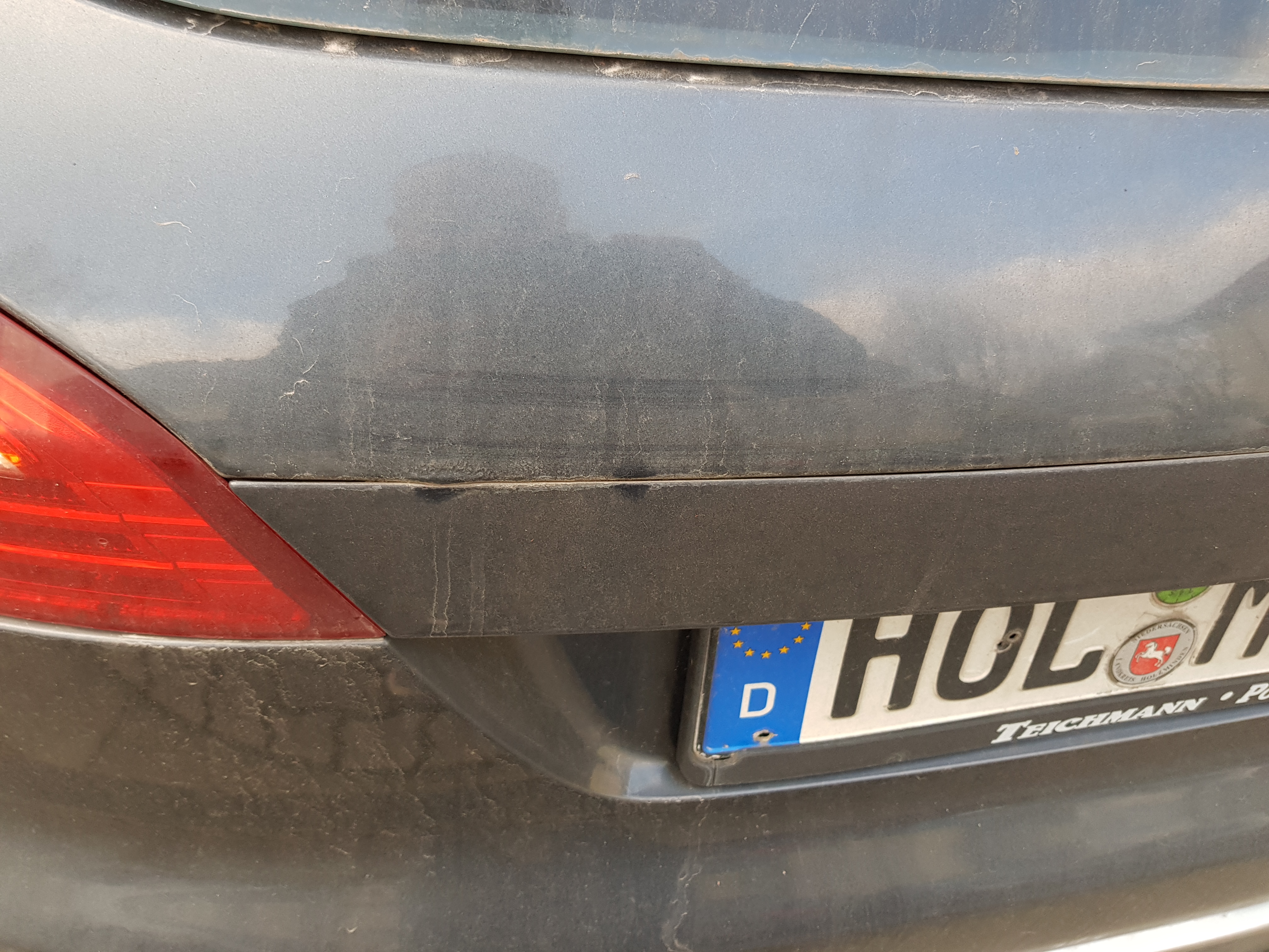 Ist links schon etwas angerostet. Also das Metall dadrüber ist bissl angerostet und hat auf den Lack der Kunststoffblende seinen Einfluss gehabt.
