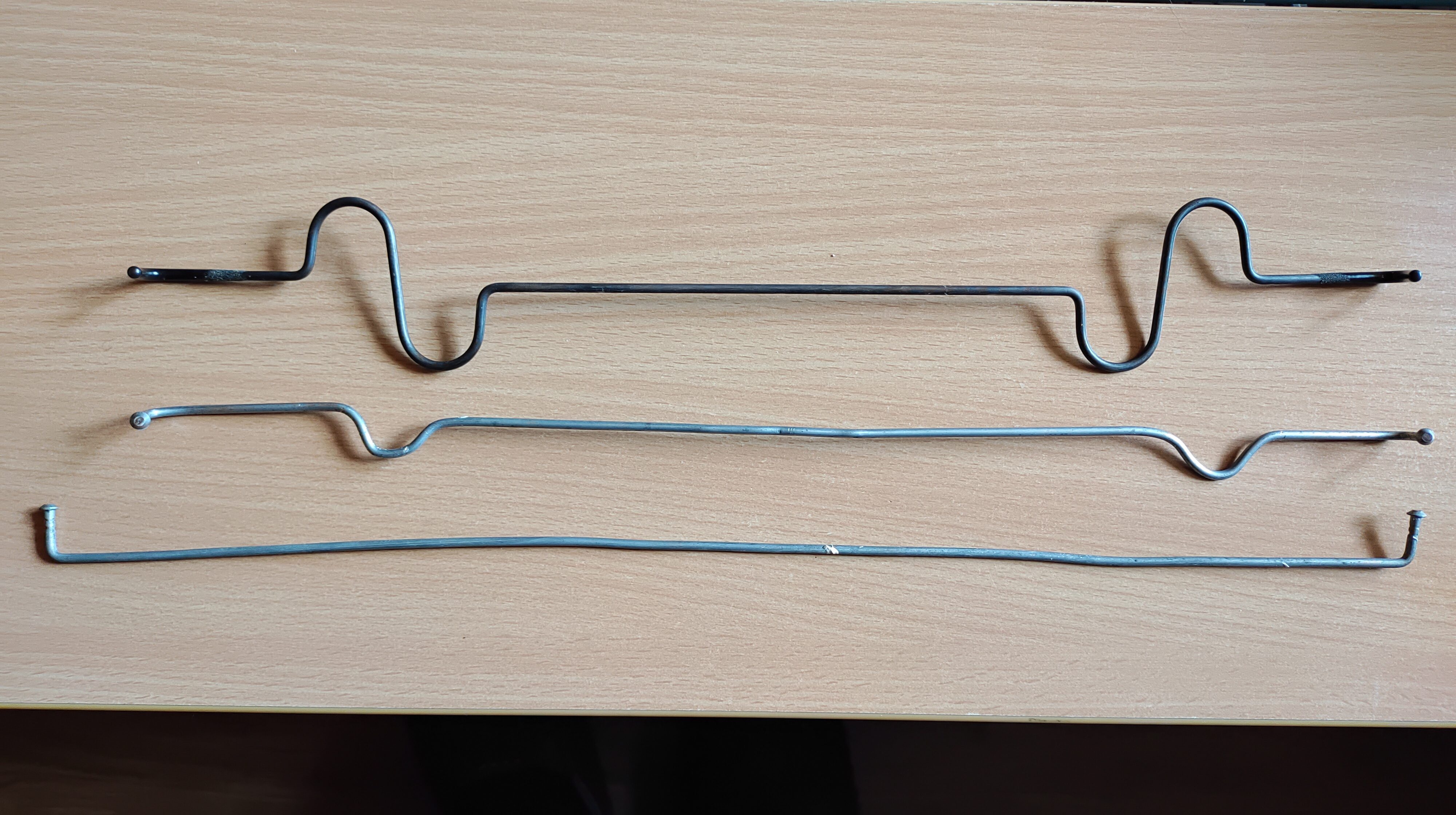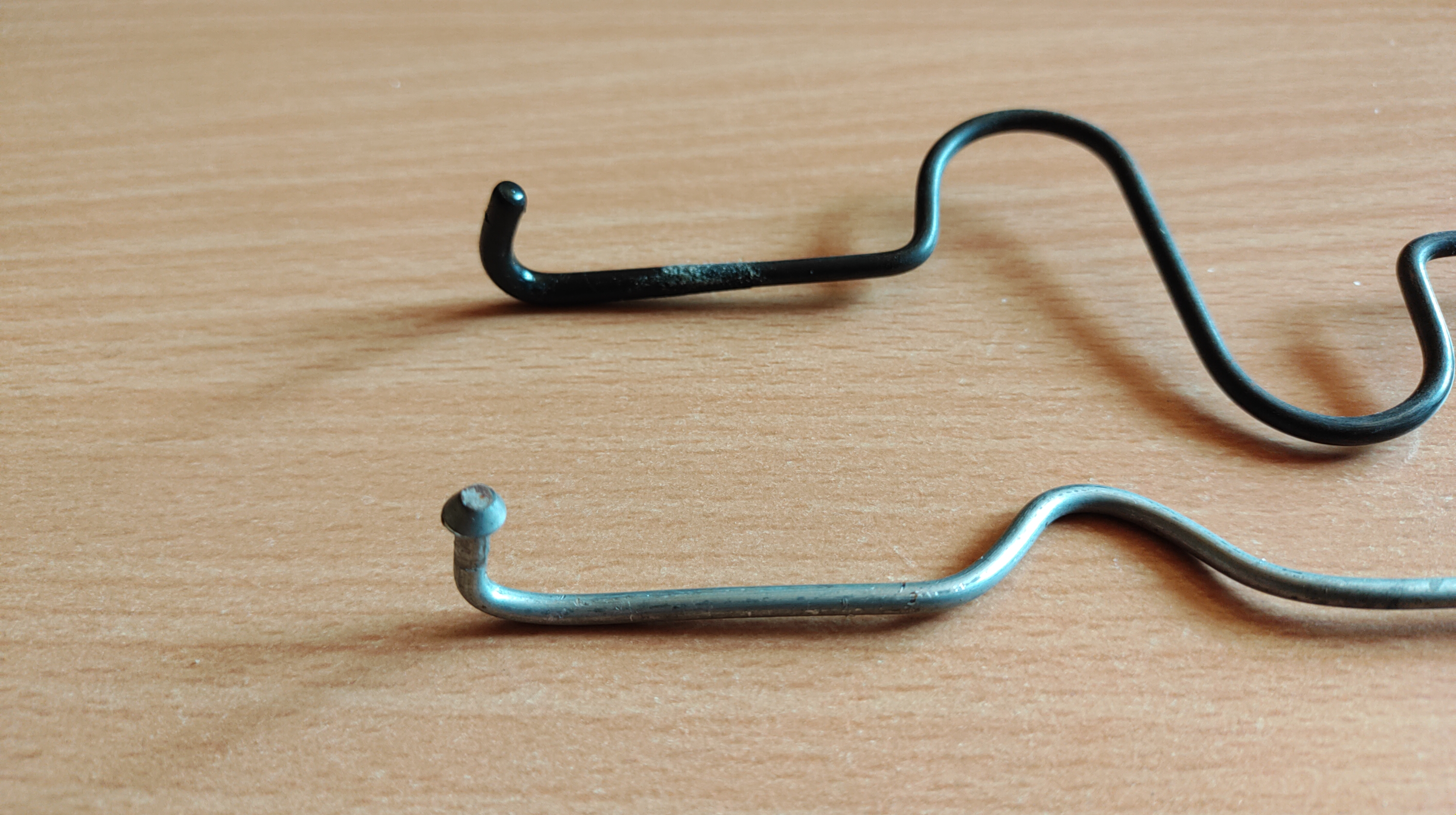 habe ich mir in der Firma einfach aus dünnem VA eine Strebe gebogen. Einfach gerade ohne irgendwelche Biegungen in der Mitte zwecks Federung. Nur außen die Haken zum einhängen.