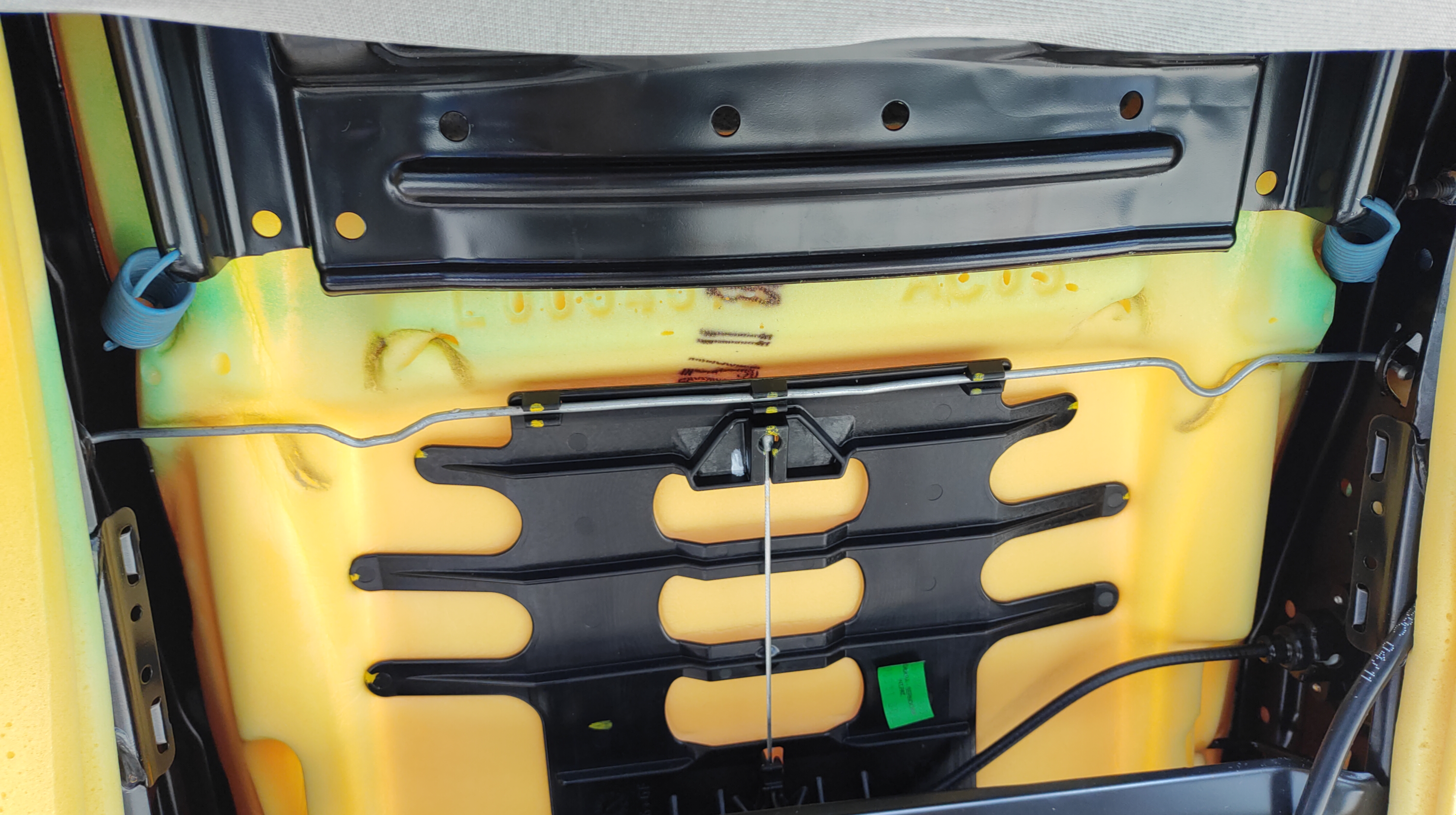Am Fahrersitz war die eine Feder (Rückenlehne) weggebrochen. Schon ewig... Die Spitze hat ein schönes Loch im Bezug nach hinten reingestochen.