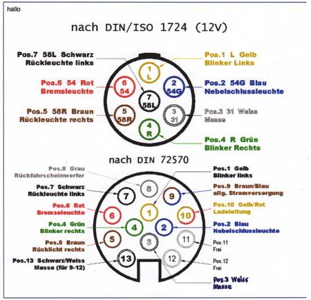 Nun zu meinem Problem: Wenn ich nur die linke oder rechte Beleuchtung am Blinker einschalte, dann gehen am Anhänger beide Schlussleuchten. Ich habe an der 13pol. Dose gemessen (ohne Anhänger), es kommt an Pin 5 und 7 gleichzeitig Strom.