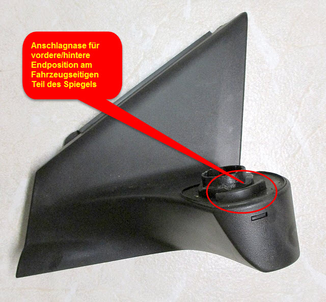 Im Moment kann ich also nur nach dem elektrischen Ausklappen der Spiegel zur Beifahrerseite rüber gehen und den Spiegel mechanisch so drehen, dass er in etwa die richtige Position hat. Da rastet er dann zwar nicht ein, aber es hält. Zumindest so lange, bis ich das nächste Mal die Spiegel wiede elektrisch ein- und ausklappe...