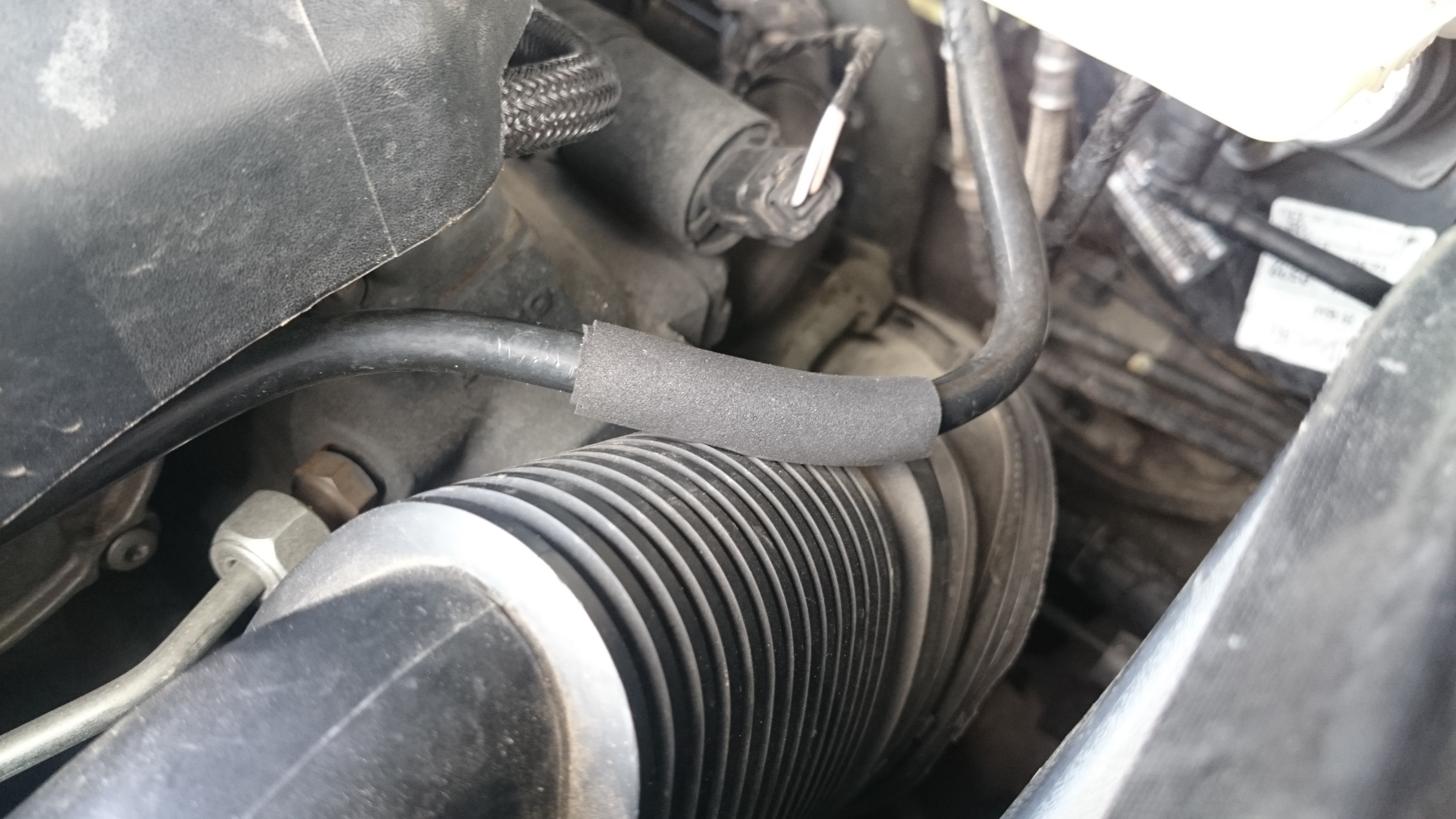 Mir war zwischendurch aufgefallen, dass der Schaumstoffpuffer vom Ansaugstutzen abgefallen war und der Stutzen infolgedessen leicht gegen Teile unterhalb vom Schlossträger schnarrte. Habs wieder gerichtet, die Ursache für das schnarren war es aber nicht.