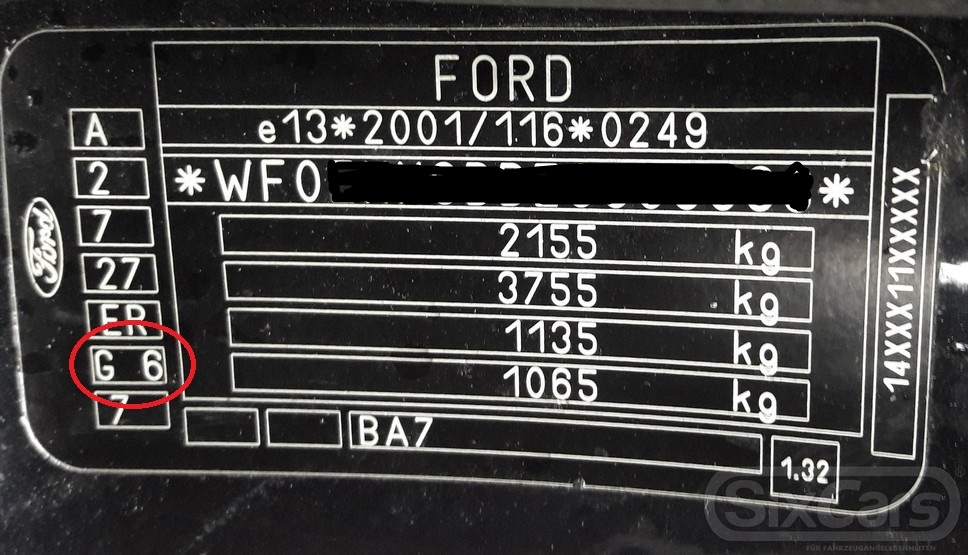 Auf dem Typenschild in der Beifahrertür steht ja eine Farbnummer ganz links das zweite Kästchen von unten. Hier zB die G 6 auf dem Foto. Damit und mit der VIN deines Mondeos kannst Du bei Ford den genauen Code (XSC-Code) erfragen.