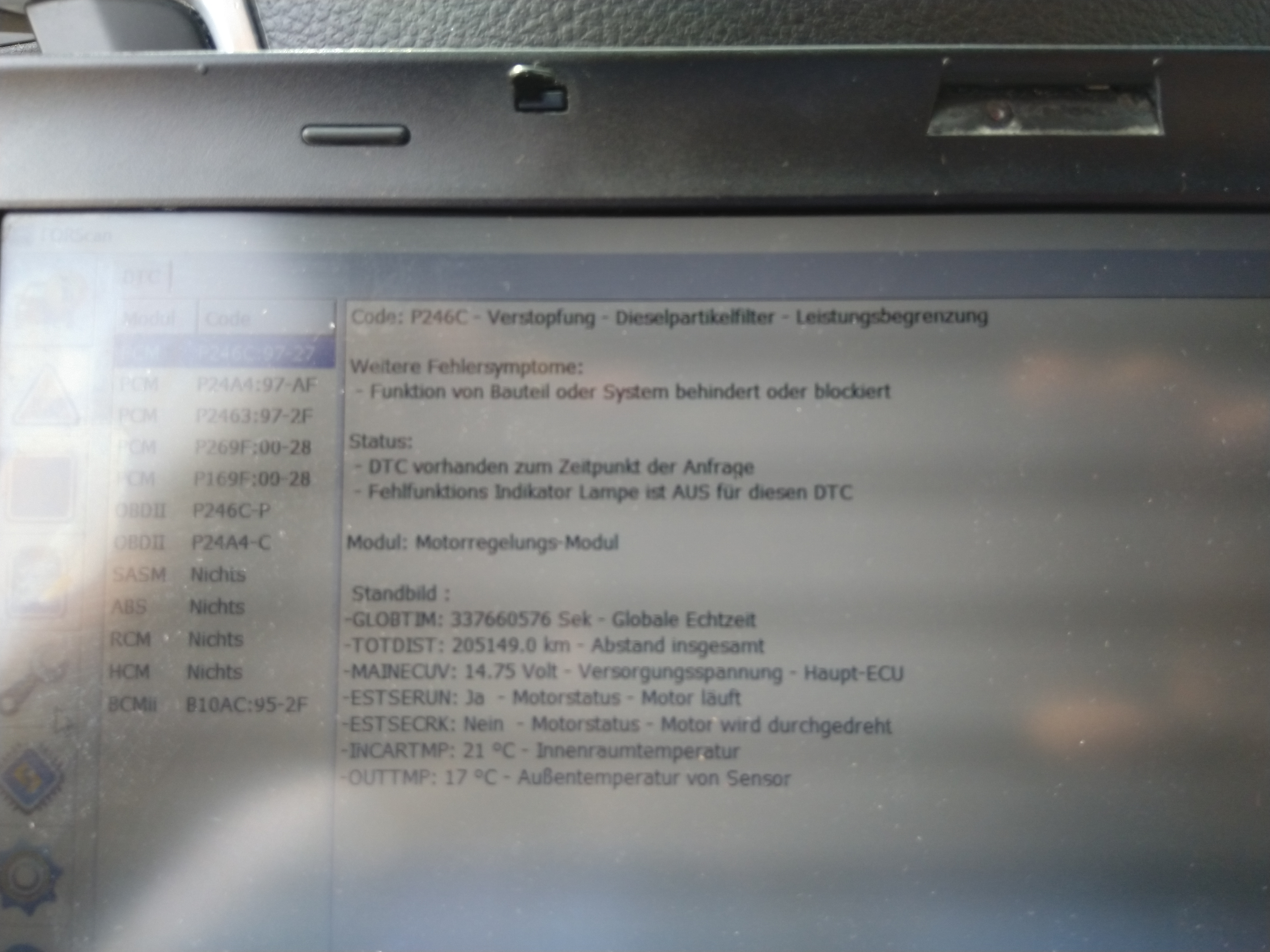 Mit Forscan die erlernten Werte vom Partikelfilter zurück gesetzt, Fehlerspeicher gelöscht. Hat nur für rund 25 KM gehalten. Hatte mich damals noch an ECU gewandt wegen Verdachts auf defektes Steuergerät. Haben die aber verneint. Es muss an der Verkabelung liegen.