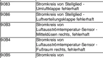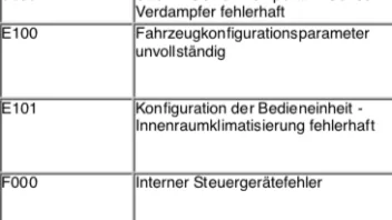 Bedieneinheit - Innenraumklimatisierung. Die erkannten Fehler werden in