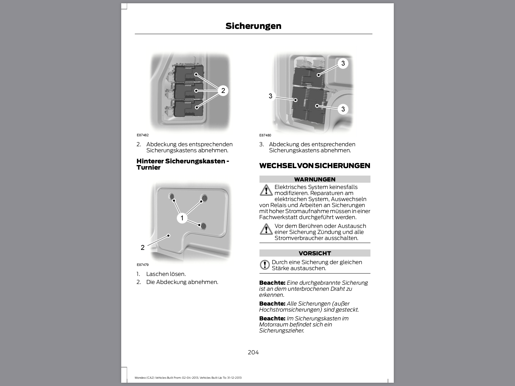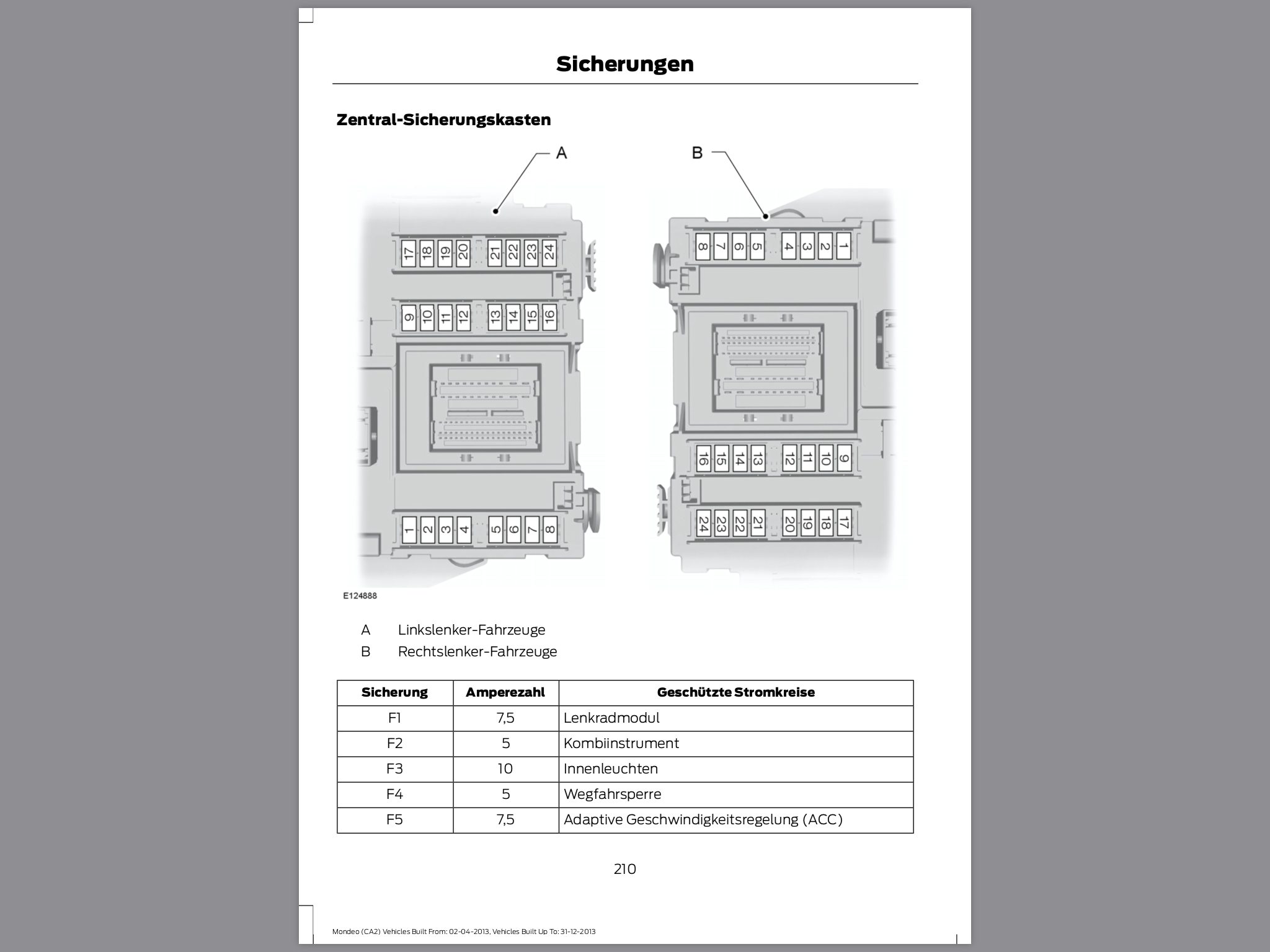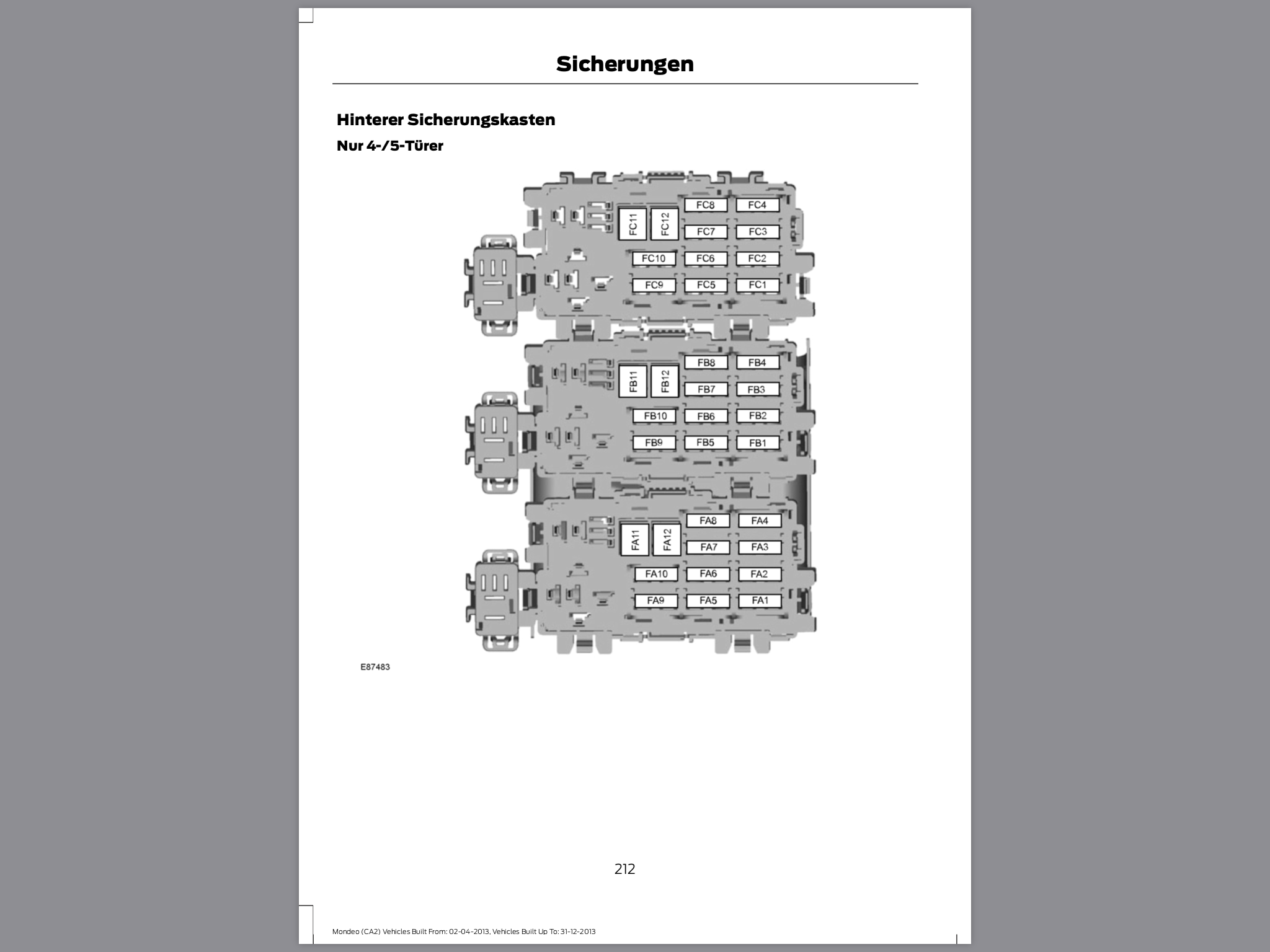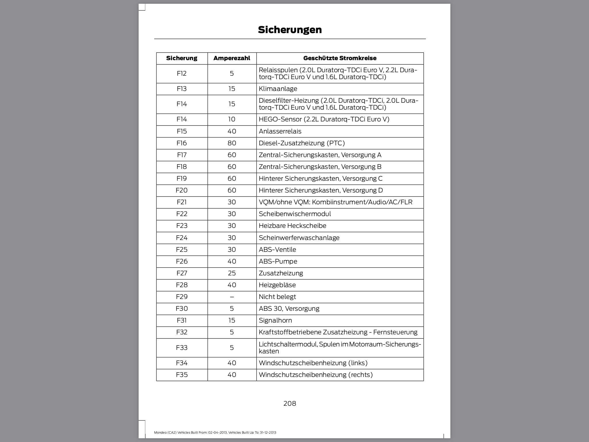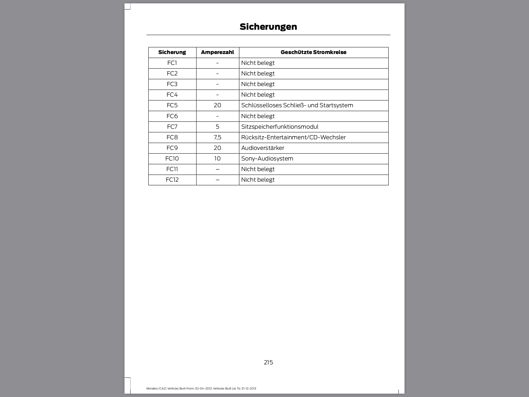 zurzeit renoviere ich meinen Mondeo Bauj.11.2007 hab mal alle Sicherungen mal so nur gecheckt und lese in der Bedienungsanleitung " Tankdeckel " ich hab keinen elektrischen Tankdeckel, also Sicherung gezogen, fertig, am nächsten Tag wollte ich die Heckklappe öffnen, geht nicht mehr, dachte und nun, da viel mir ein, Sicherung gezogen, die Sicherung wieder rein und geht wieder.