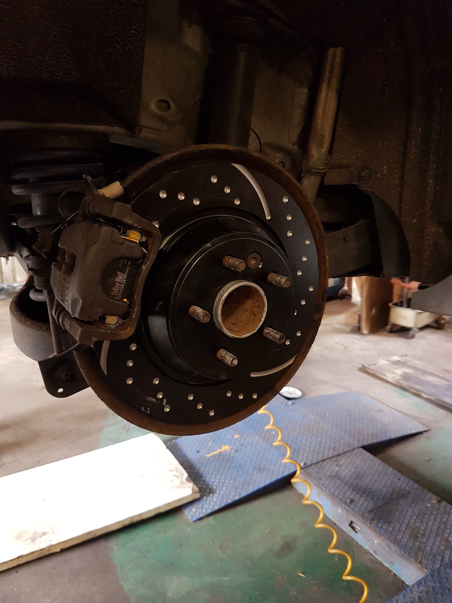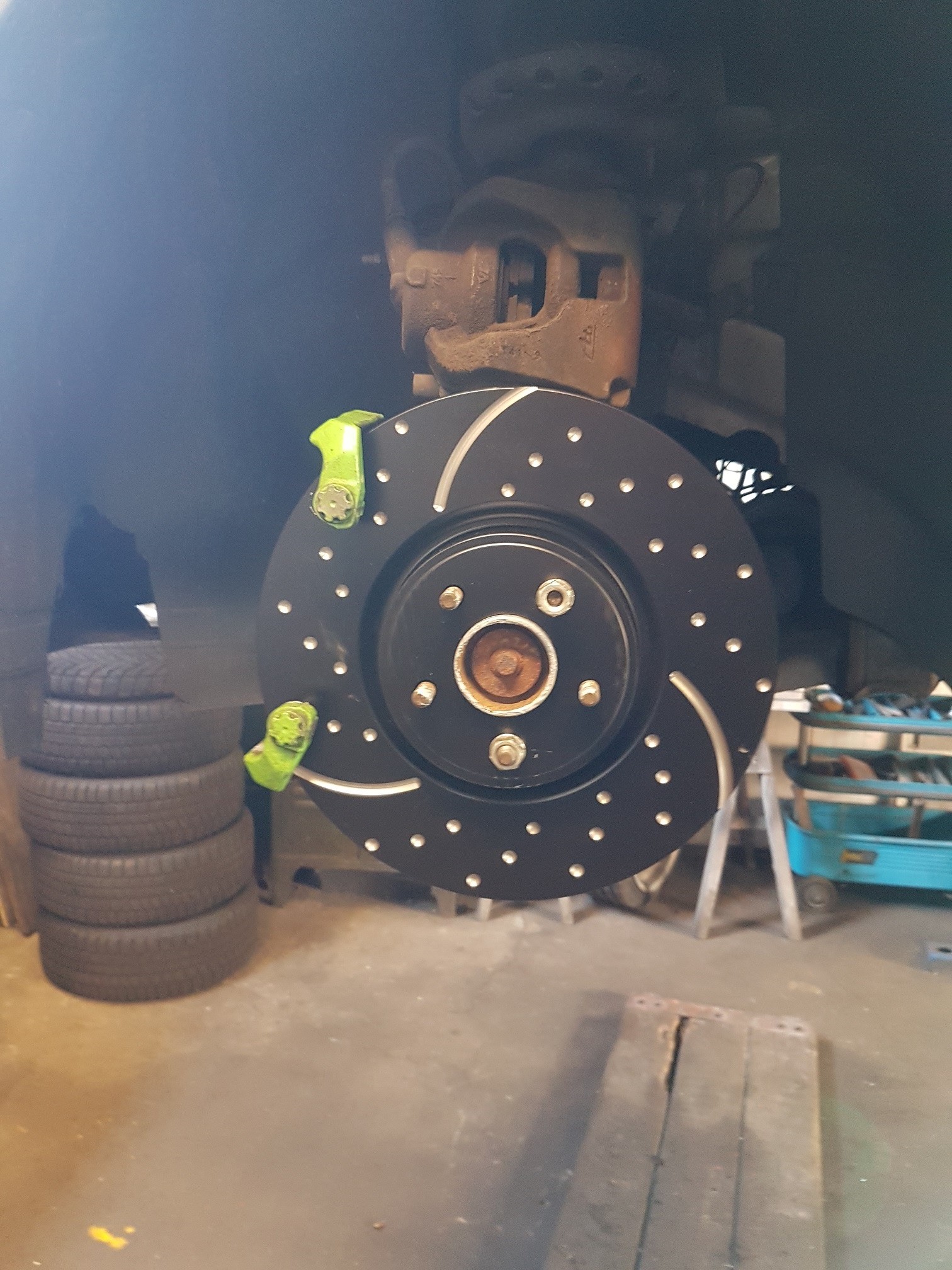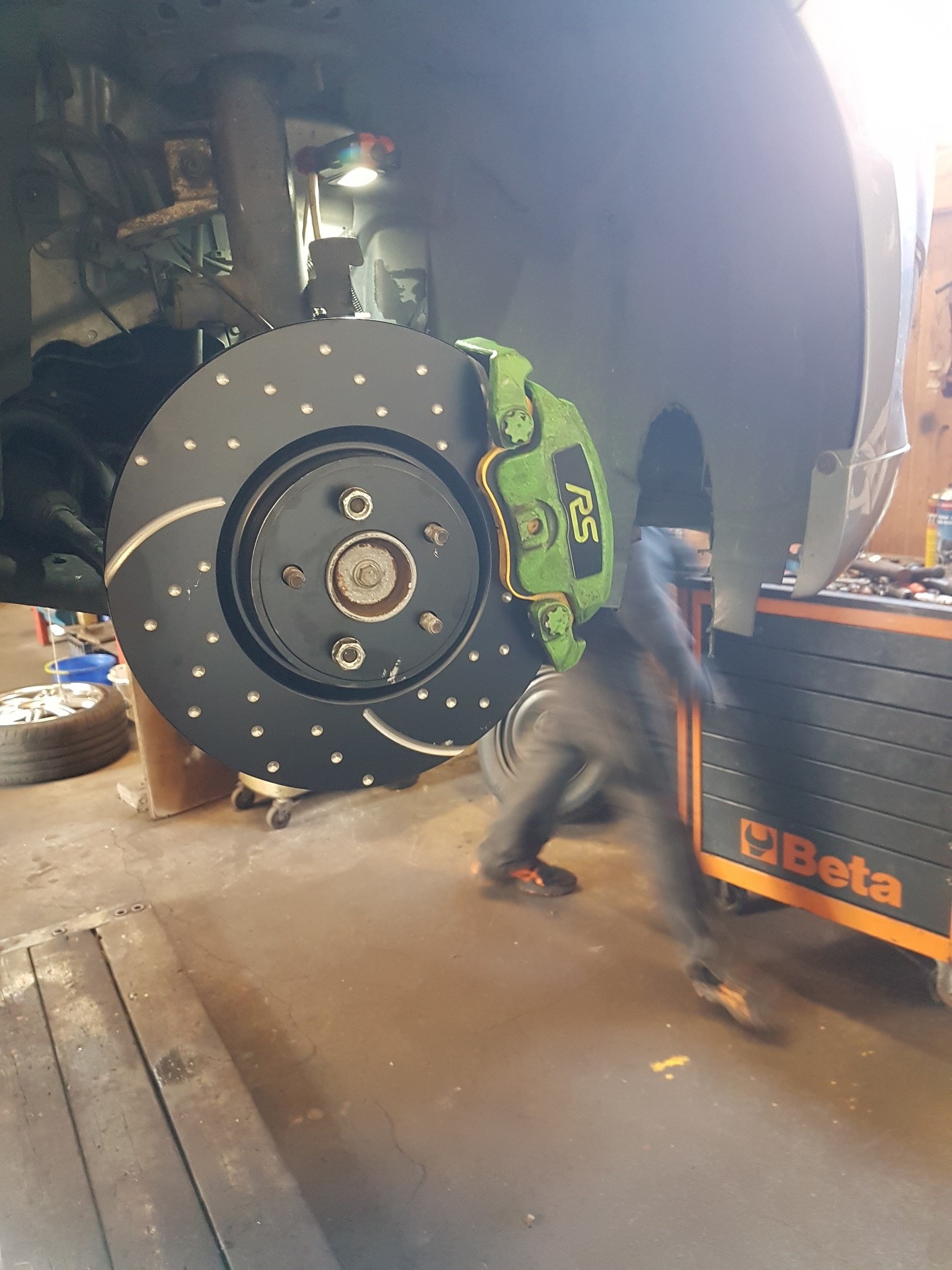 da im Dezember / Januar mein Umbau ansteht, habe ich schon einmal hat die Verzögerung gemacht. Durch Zufall bin ich an die Bremssättel und die Bremssattelhalter vom Focus RS gekommen. Dazu gekauft habe ich mir die Bremsscheiben von EBC, Turbo Groove für Vorne und Hinten. Als Bremsbeläge habe ich Yellow gewählt. Bis jetzt bin ich sehr zufrieden, was das verhalten der Bremse angeht.