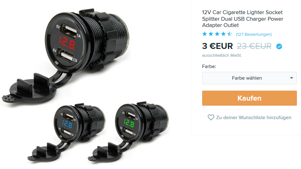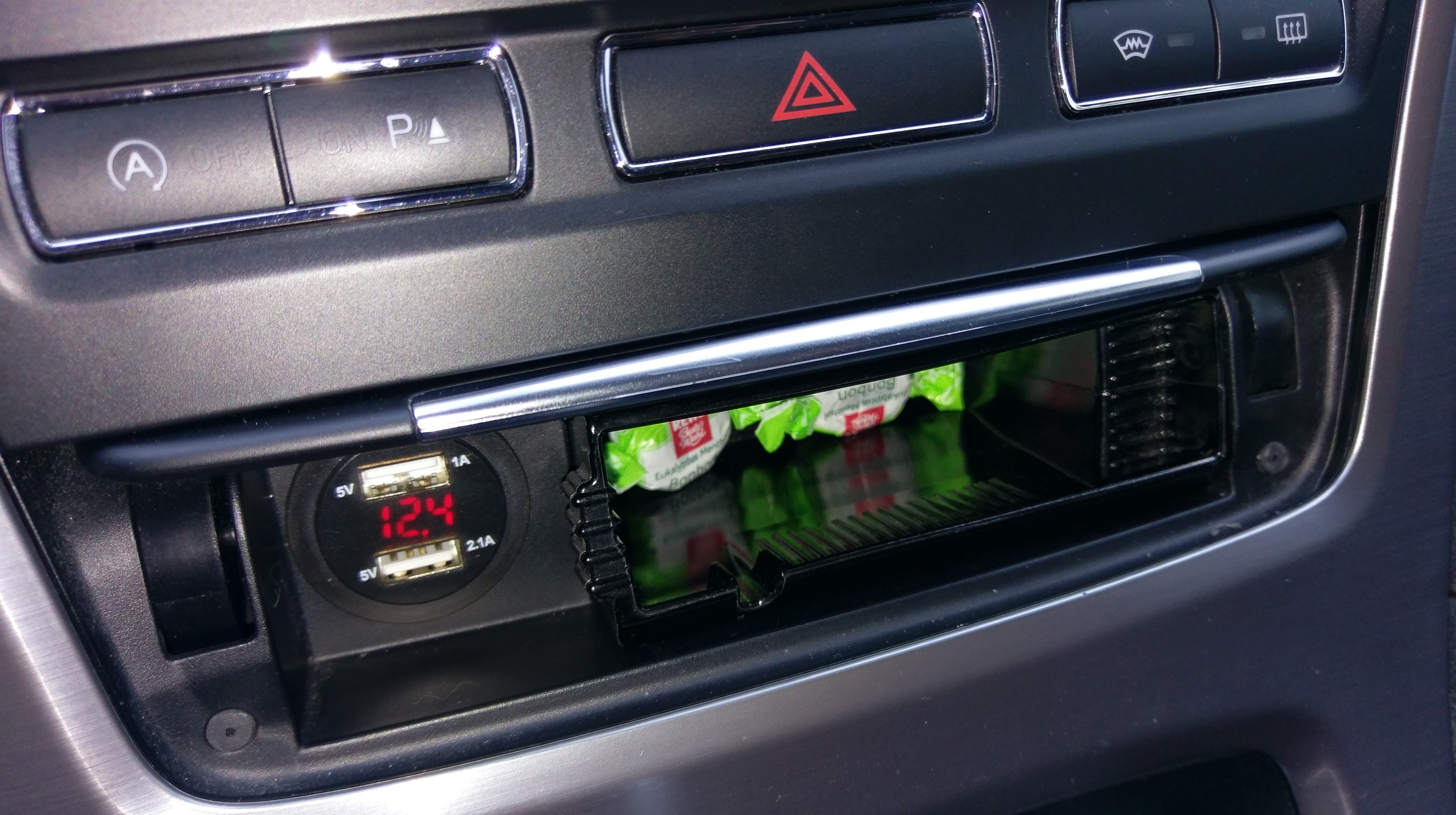 Als zweites ist vorne der Zigarettenanzünder rausgeflogen... Wir rauchen zwar, aber noch nie im Auto. Also raus damit und was anderes rein.