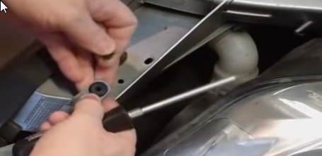 Und zwar, um die Mondeo-4 Scheinwerfer "rausnehmen" zu können: Es ist genau die Schraube, welche den Kühlergrill befestigt. Die muss weg, damit man den Scheinwerferkörper "bewegen" kann.