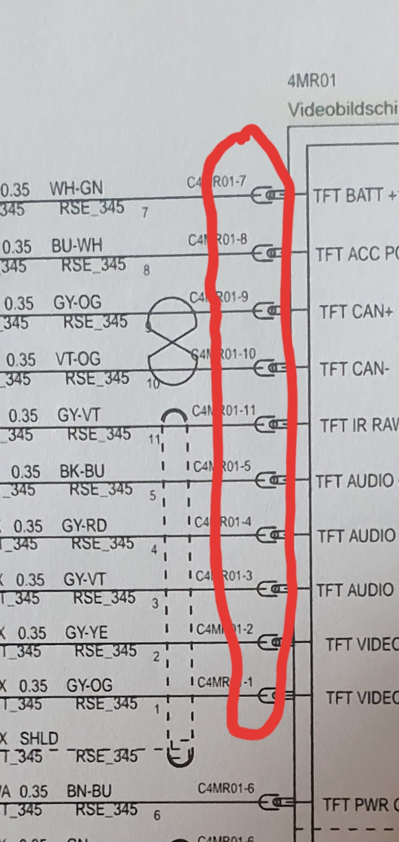 Hey does any one have the pin out for the head rest screen plug please