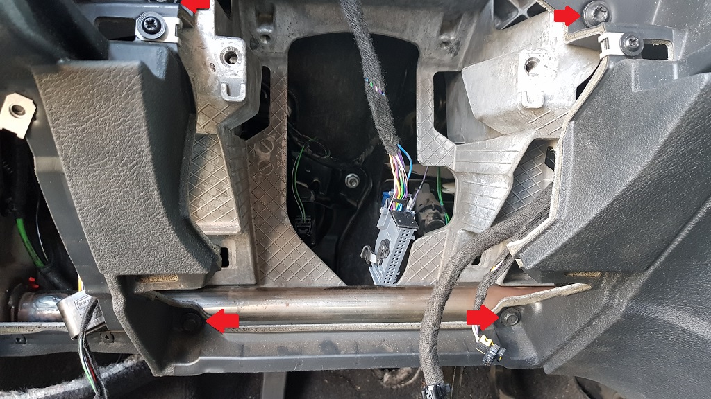 Lenksäulenverkleidung oben + unten, Lichtschalter und Kombiinstument ausbauen.