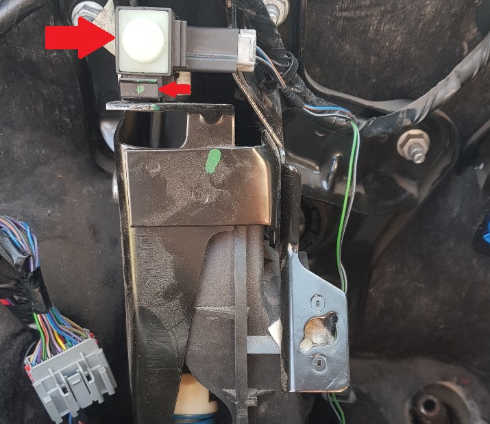 Wenn vorhanden Stecker vom Positionssensor Pedalstellung (direkt neben dem Geberzylinder) abziehen.