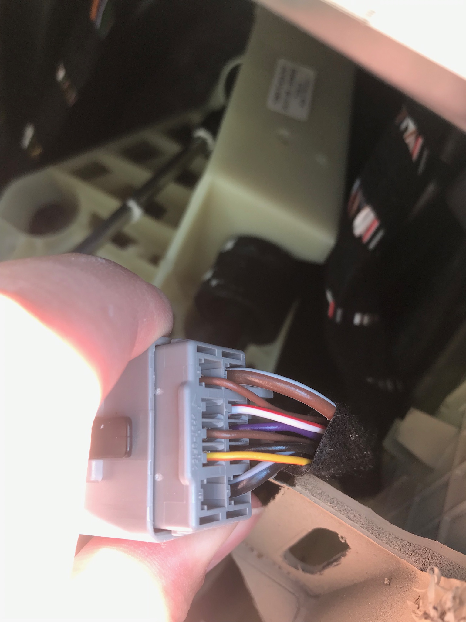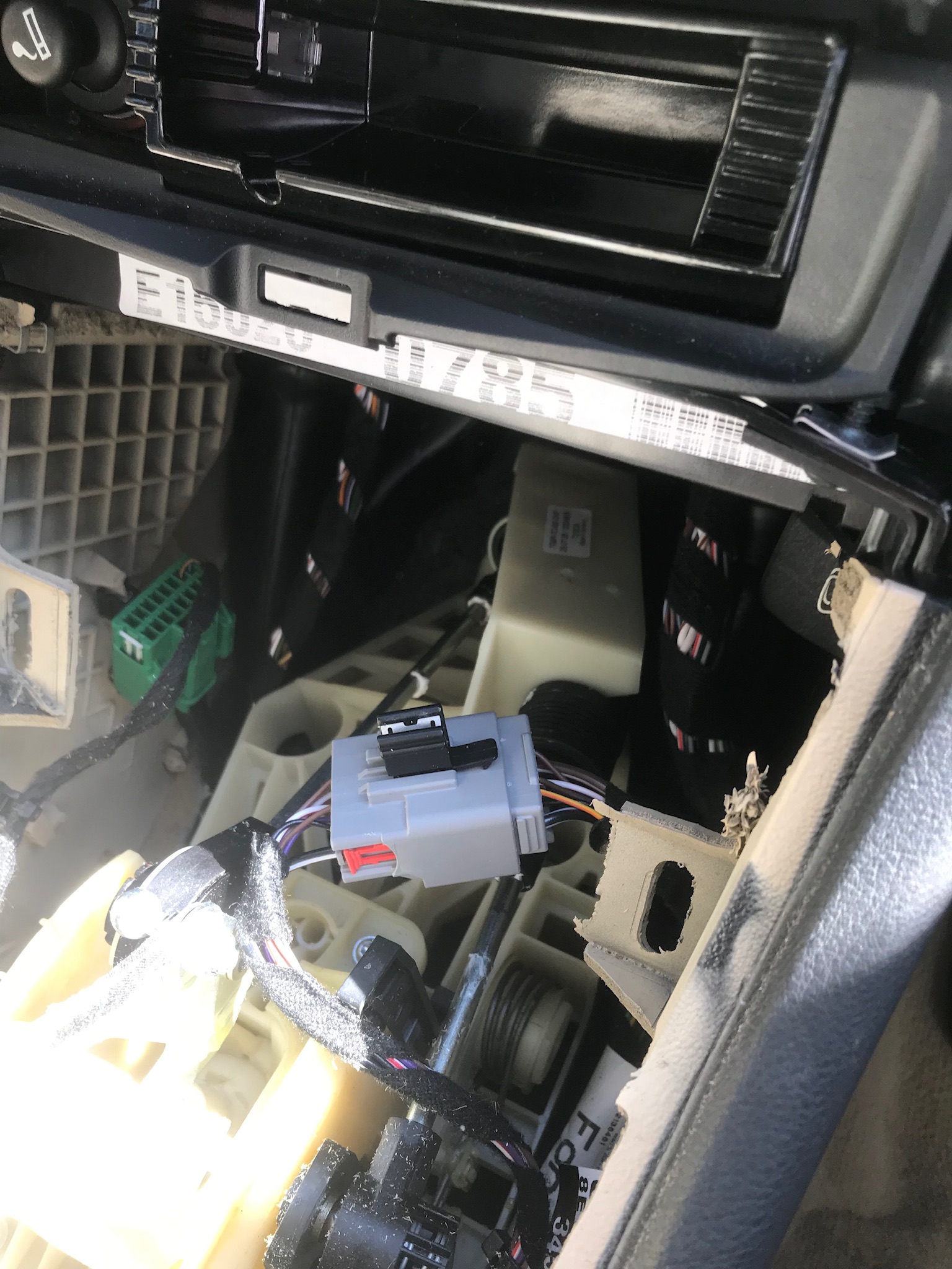 Doch nach dem Abnehmen der oberen Verkleidung der Mittelkonsole und dem Umbau des Halterahmens für den Schalter, musste ich zu meinem Leidwesen festellen, dass ich kein Anschlusskabel erkennen konnte.