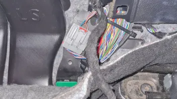 Ist er nicht. Der grüne ist für die adaptiven Dämpfer bzw. deren Schalter (falls vorhanden) und bei Fahrzeugen mit Keyless läuft die Verbindung zur Antenne in der Miko da drüber.