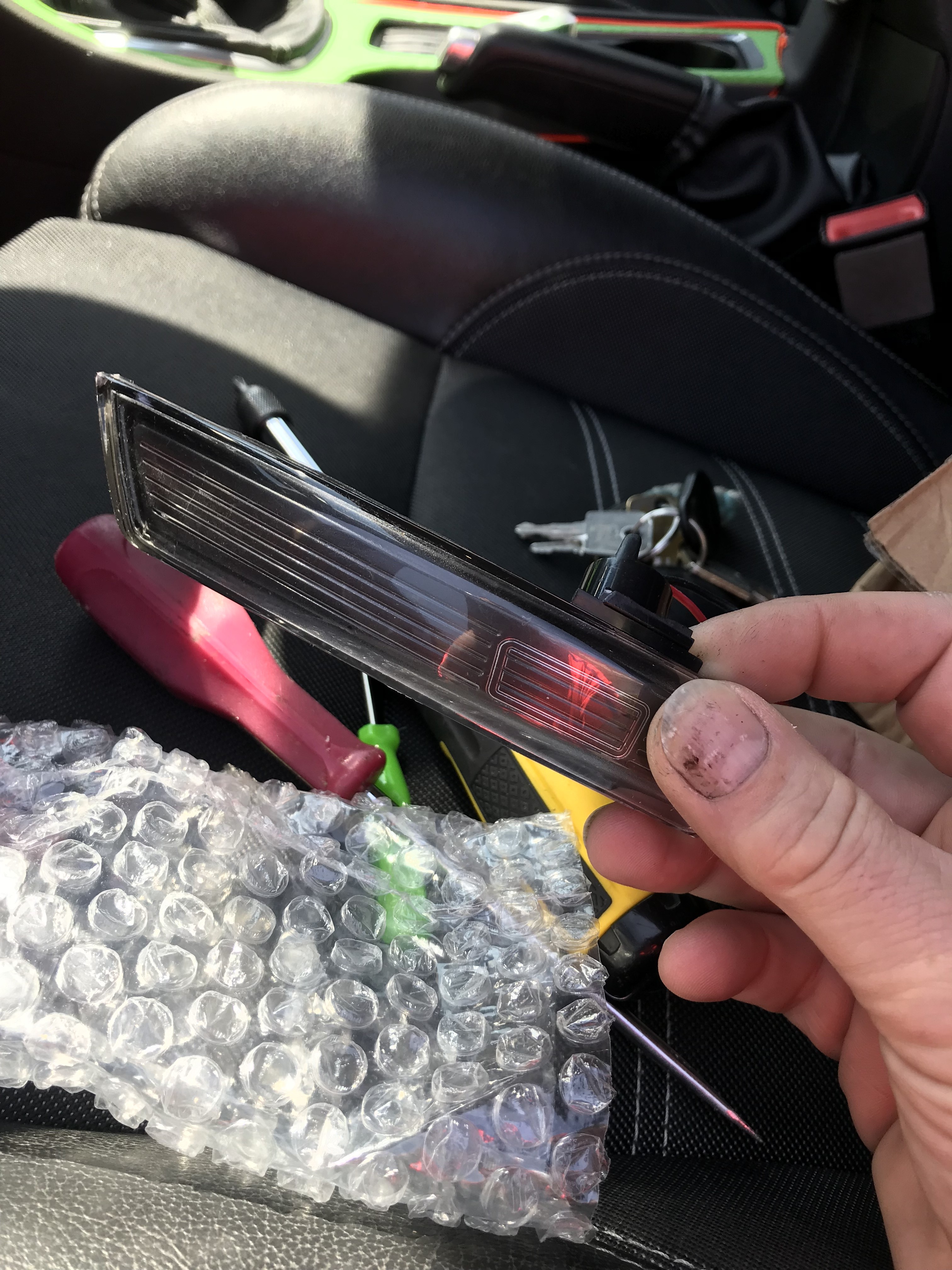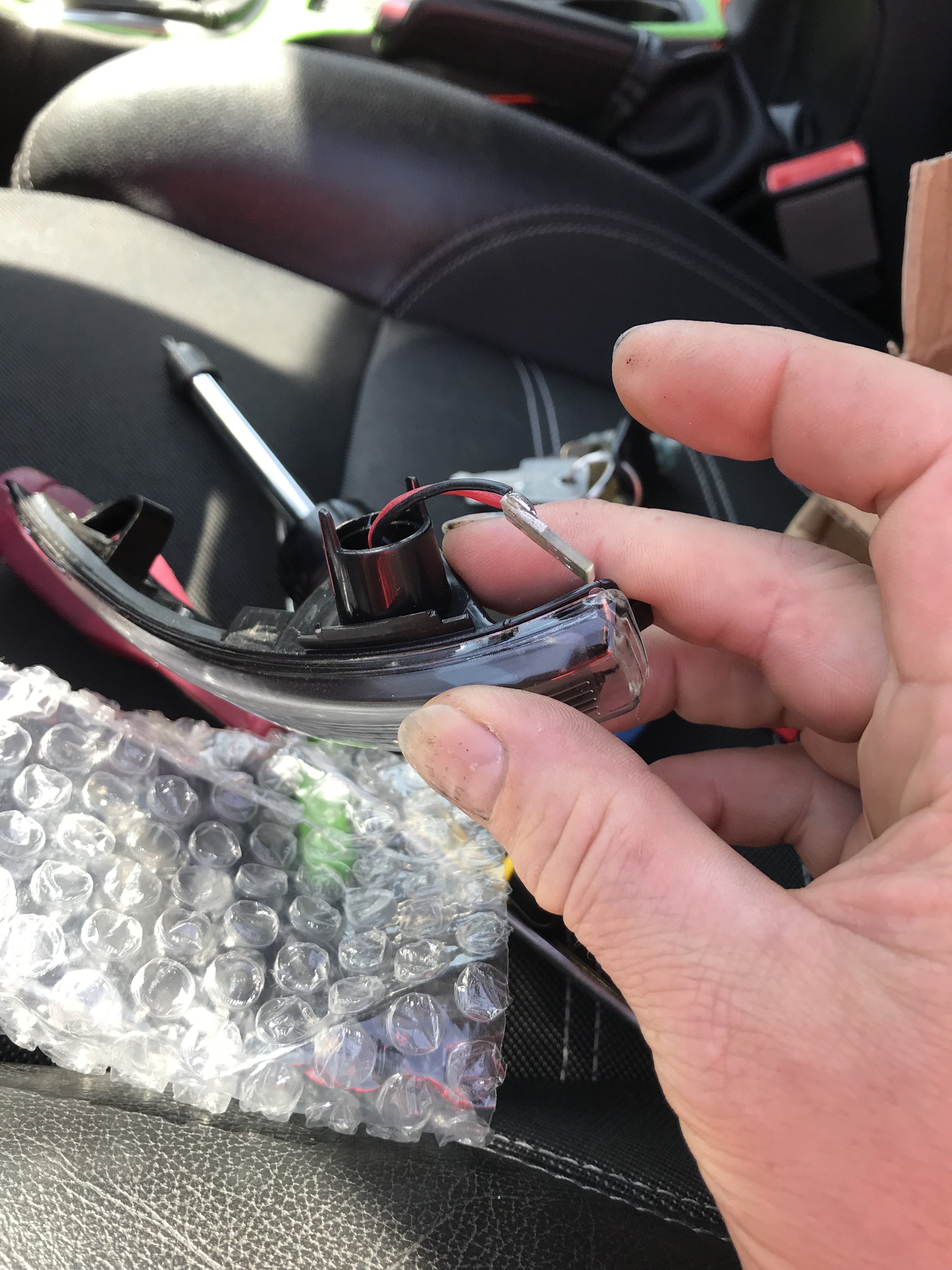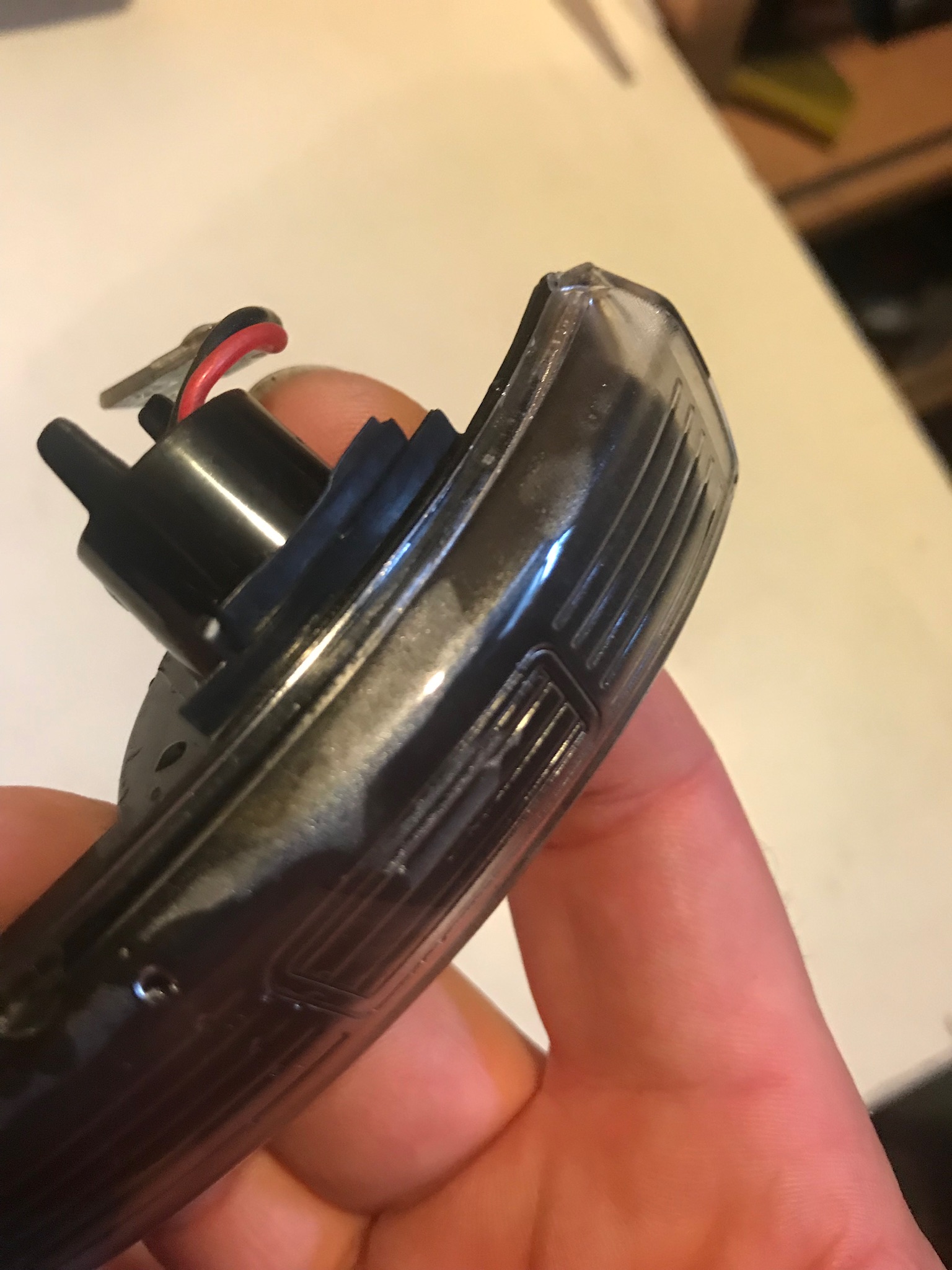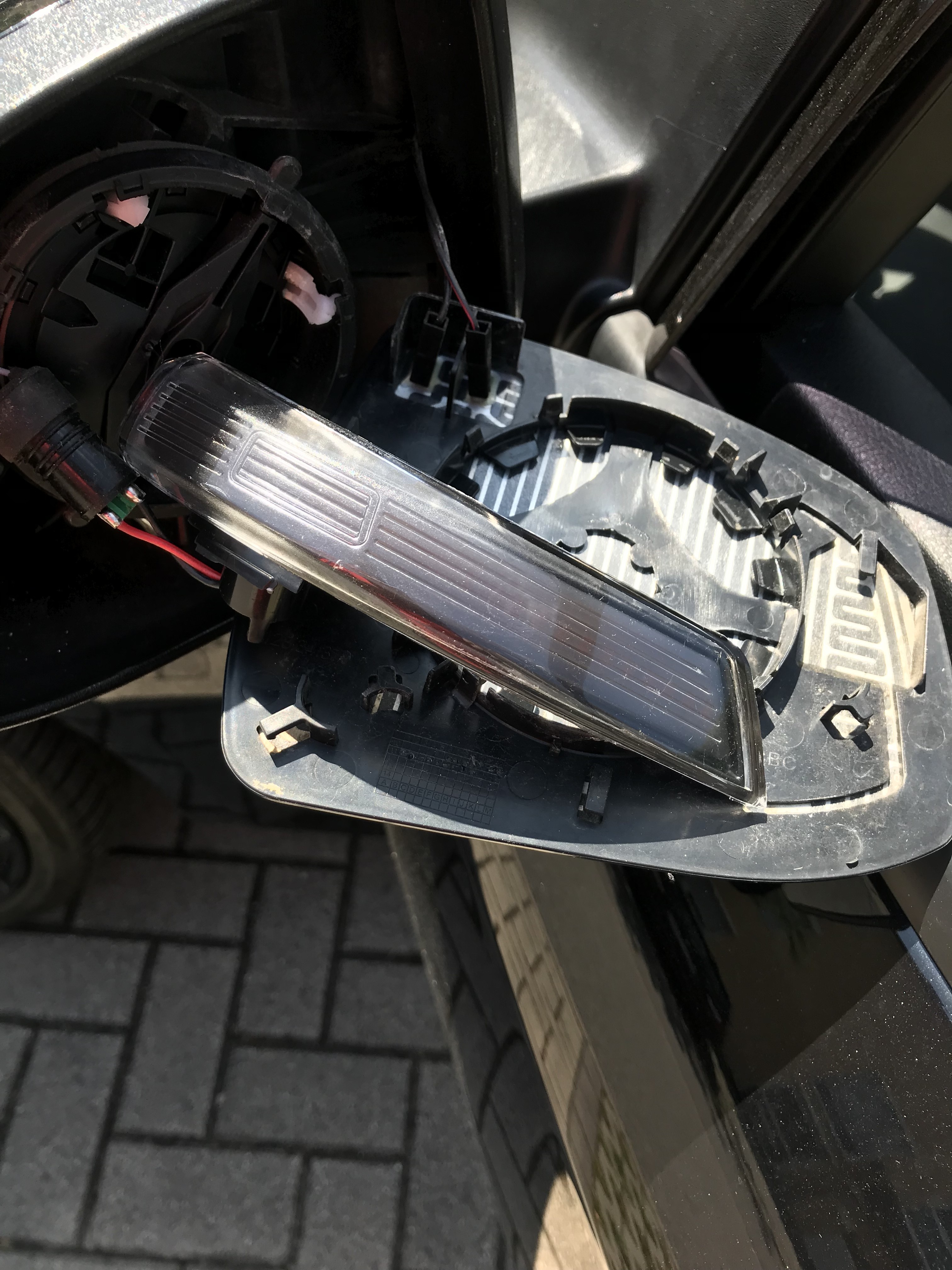 und dremel das auf und verklebe es am sequenziellen Blinker. Beim öffnen habe ich aber gesehen das das Innenleben ziemlich gut gemacht ist. Extra eine schwarz durchsichtige Abdeckung über den LEDs und dann erst das Glas drauf. Aber wie gesagt, leider war eine kleine Stelle undicht. -