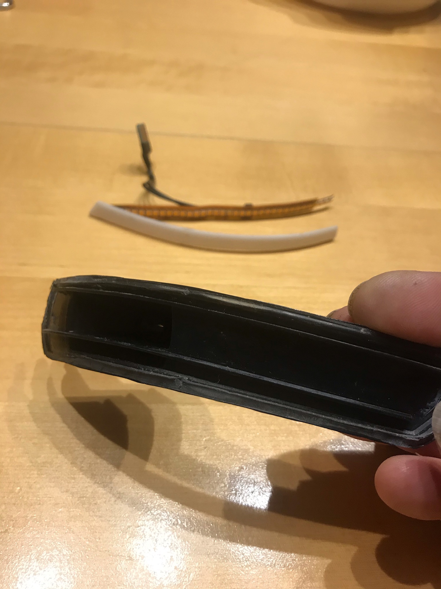 weiter gehts mit dem ChinaScheixe. Sie wollen es, aber manchmal können sie es irgendwie nicht zu Ende denken. Nach 11 Monaten Exitus von der rechten Seite. Gewechselt mit einer Neubestellung von 12€von AliExpress !!! . Den defekten mal geöffnet. Geile kleine Elektronik und gut durchdacht. Aber eben das Gehäuse billig zusammen gebrutzelt. Anstatt die das richtig dicht verschweißen. Wasser hat die Elektronik gekillt. Hier die Bilder. LED Strip mit Abdeckung in weiß das sich das Licht homogen verteilt. Dann eine Art Dichtschlauch und das Gehäuse.