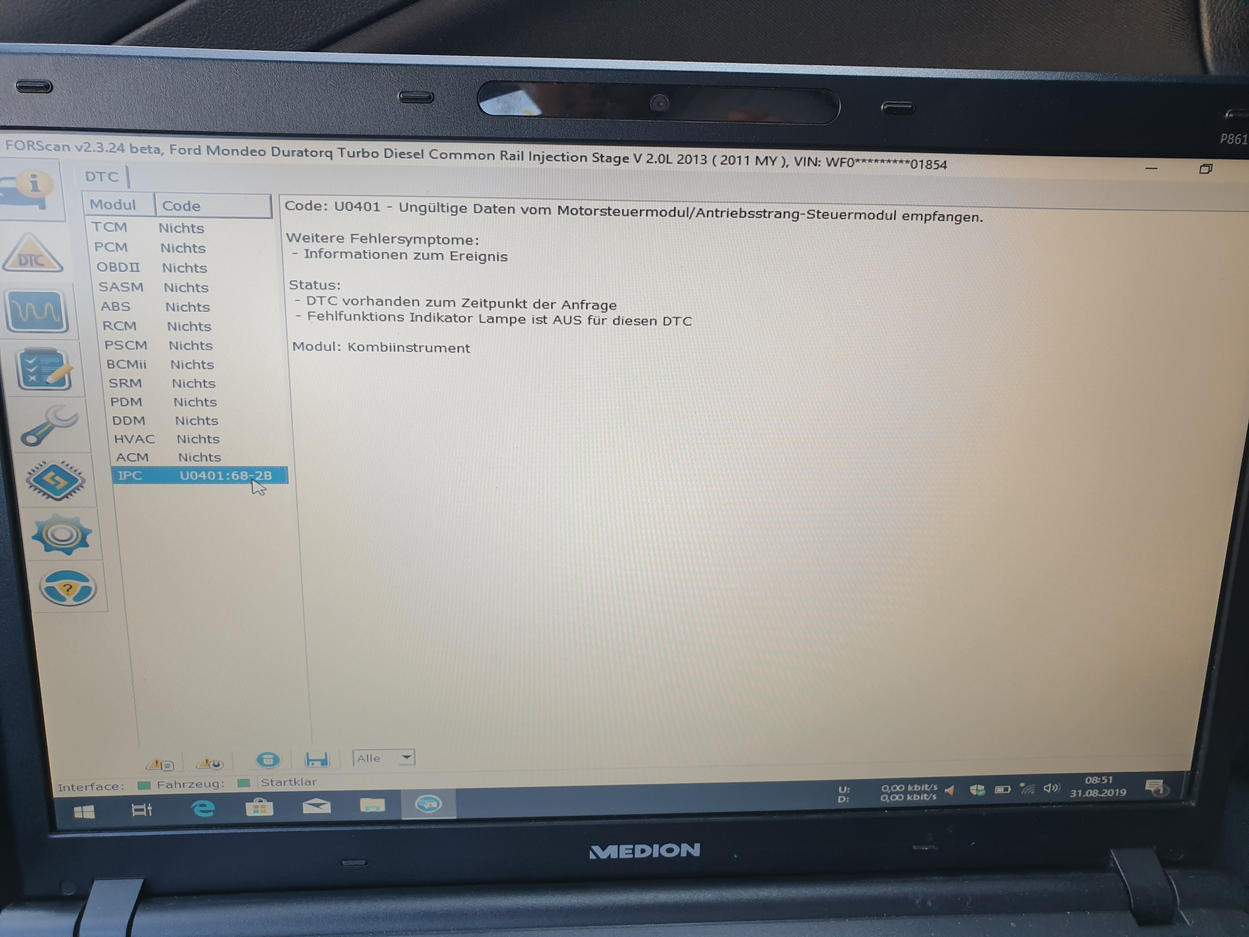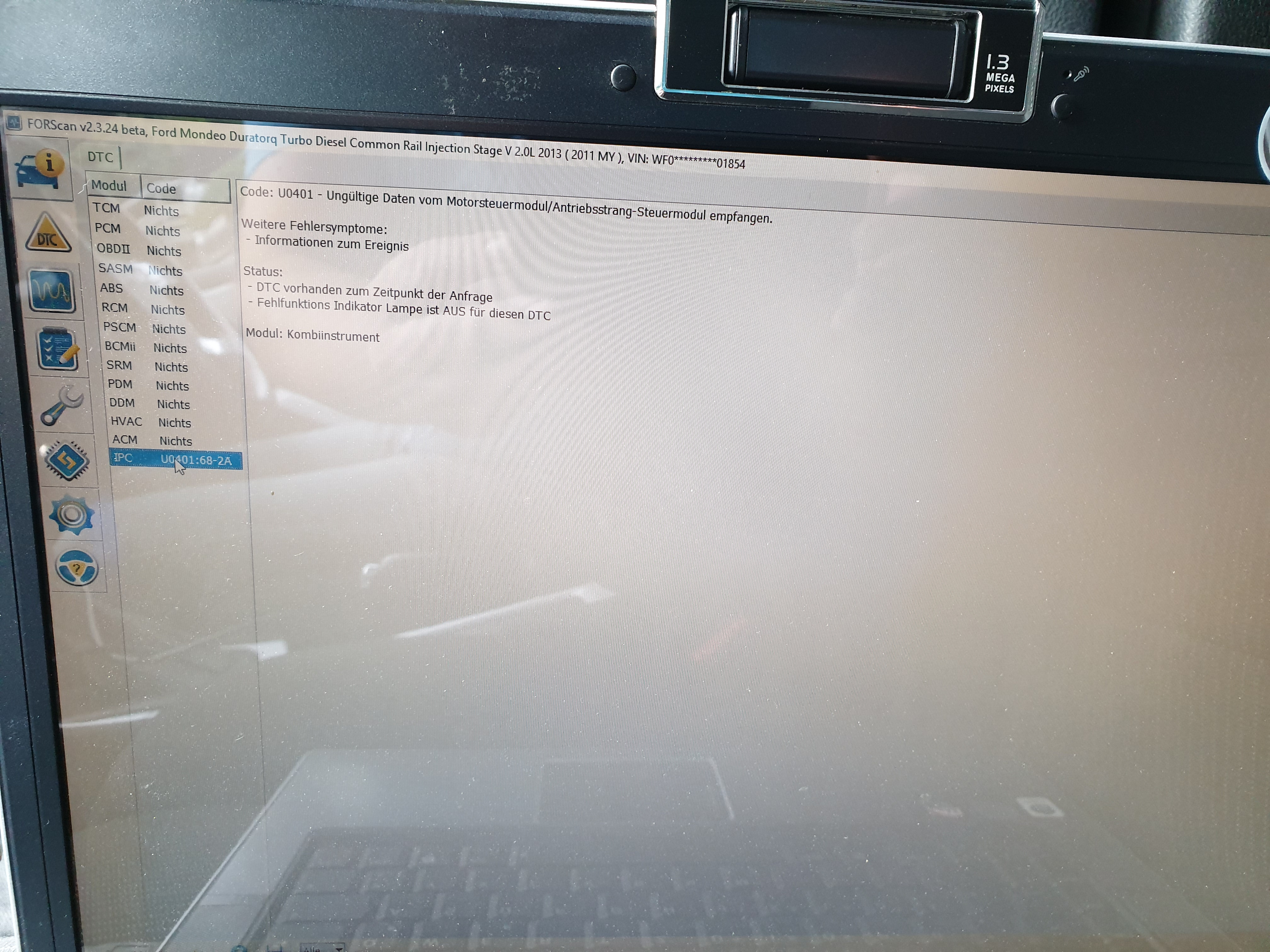 Weejas, wenn Du den DTC löschst, dann Zündung aus und wieder anmachst und so 10-15 sek. wartest und dann erneut ausliest, kommt der Fehler dann wieder?