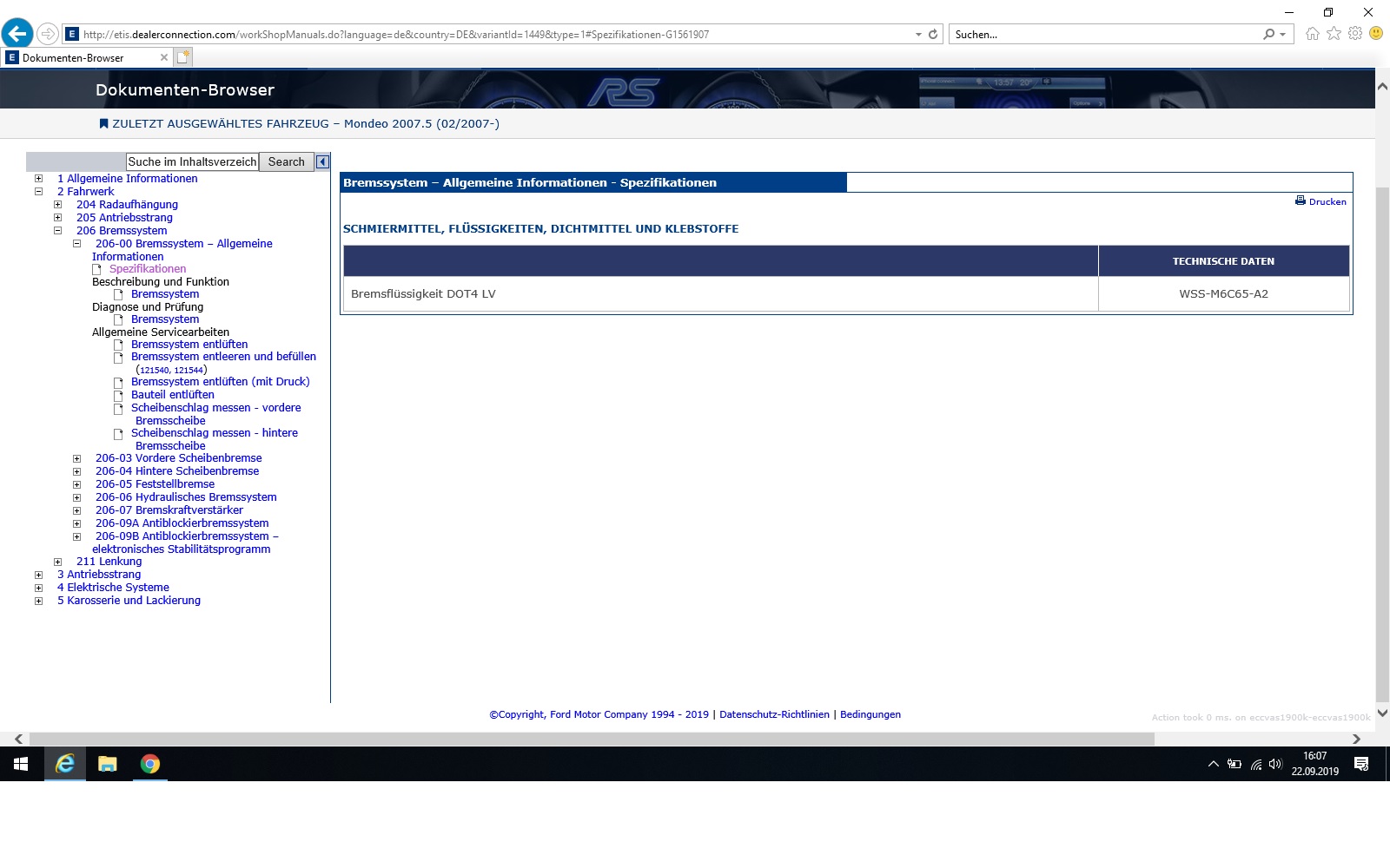 Es soll laut Betriebsanleitung eine Ford oder Motorkraft Super DOT 4 Bremsflüssigkeit mit der Spezifikation ESD-M6C57-A sein.