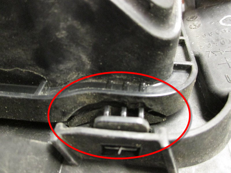 • Beim Xenon-Scheinwerfer sind es 4 Ventilationsöffnungen. In den nach unten gerichteten Gummischläuchen ist noch ein grobmaschiger Kunststoffschwamm, schaut aus wie von nem Insektenschwamm und dient mutmaßlich dazu selbige daran zu hintern durch die Öffnung in den Scheinwerfer zu klettern ;)