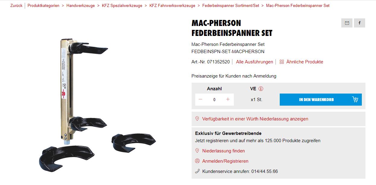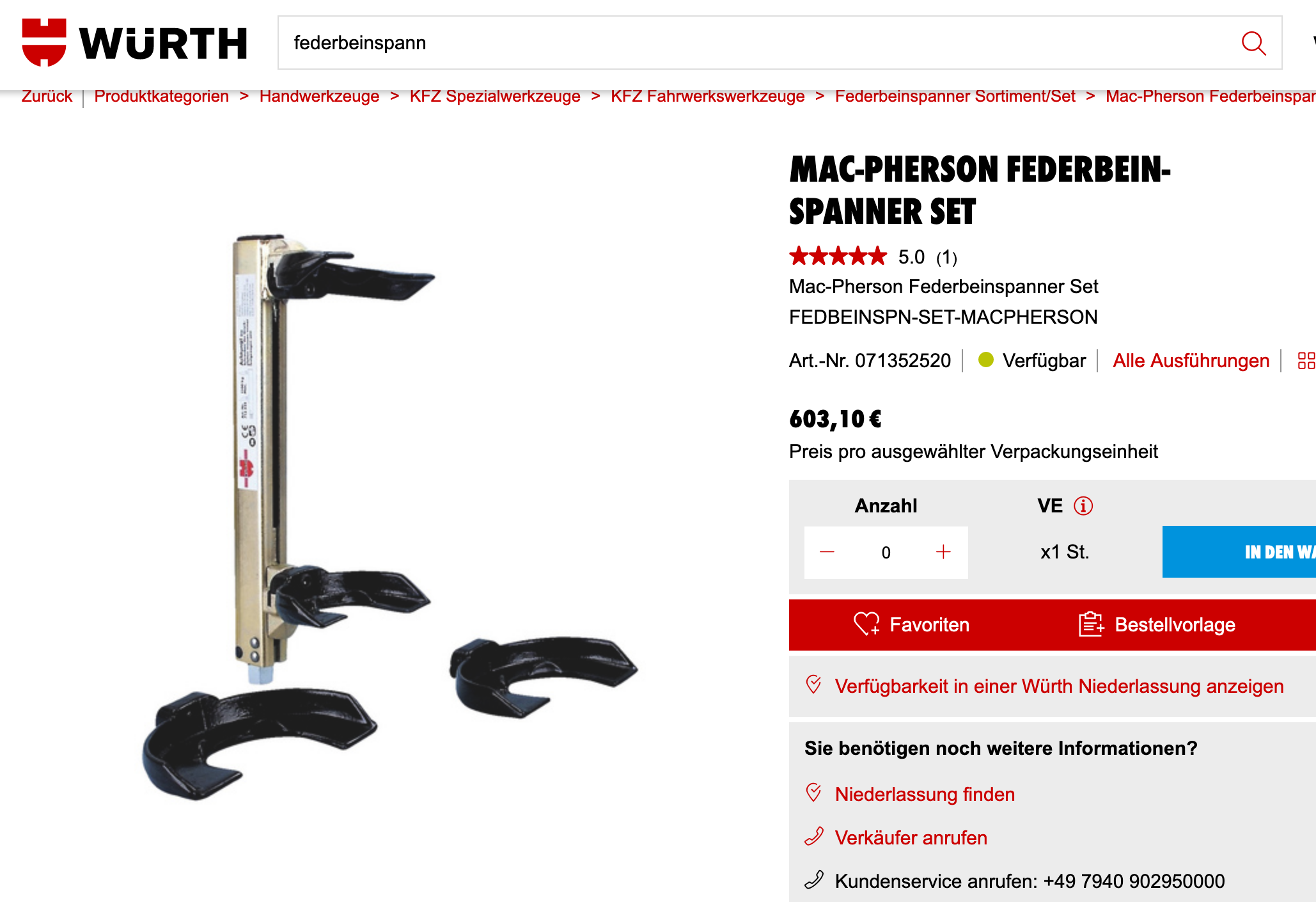 Für den Wechsel der vorderen und hinteren Fahrwerksfedern und Stoßdämpfer hatte ich mir diesen Federspanner (Preisgruppe 60-80€) bestellt: