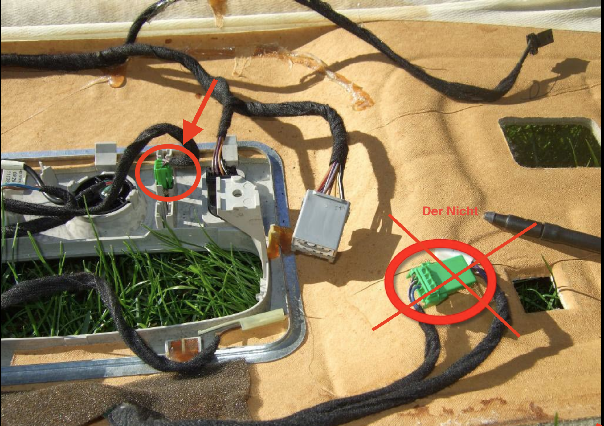 fahre einen S-Max BJ08 und vor kurzem ist mir bei der Demontage der Dachkonsole (da wo die Innenraumleuchte drinsitzt) aufgefallen das dort 2 Stecker vorhanden sind welche nicht benutzt werden. Es grüner 6 poliger mit 3 belegten Pins und 1 Stecker bzw ein Kabel mit Steckhülse (könnte eine extra Masseleitung sein da braunes Kabel)