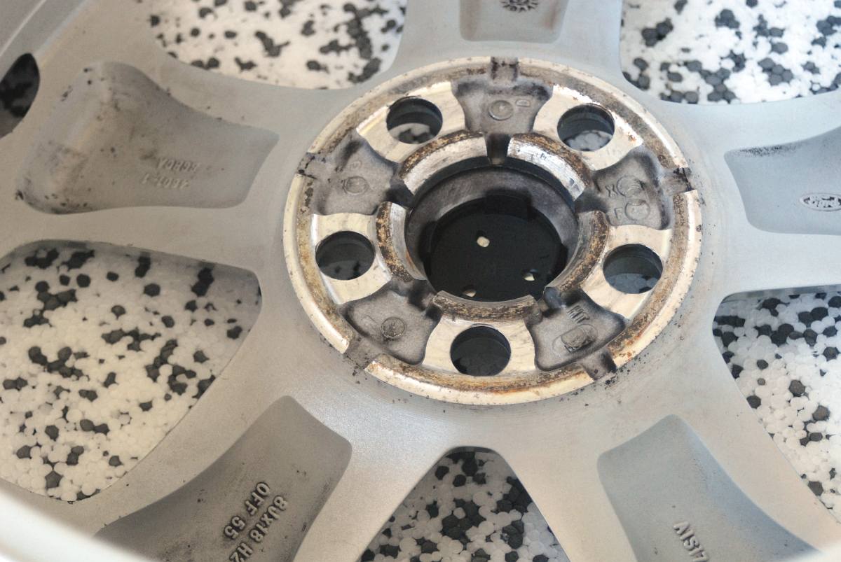 An der Vorderachse ist alles paletti. An der Hinterachse jedoch scheinen die Bolzen des Radträgers etwas mehr herauszustehen, sodass diese an der Felge anliegen und einen Kontakt Felge mit Distanzscheibe um 1-2 mm verhindern. An der Felge sind die Kontaktstellen der Serienbolzen deutlich sichtbar.