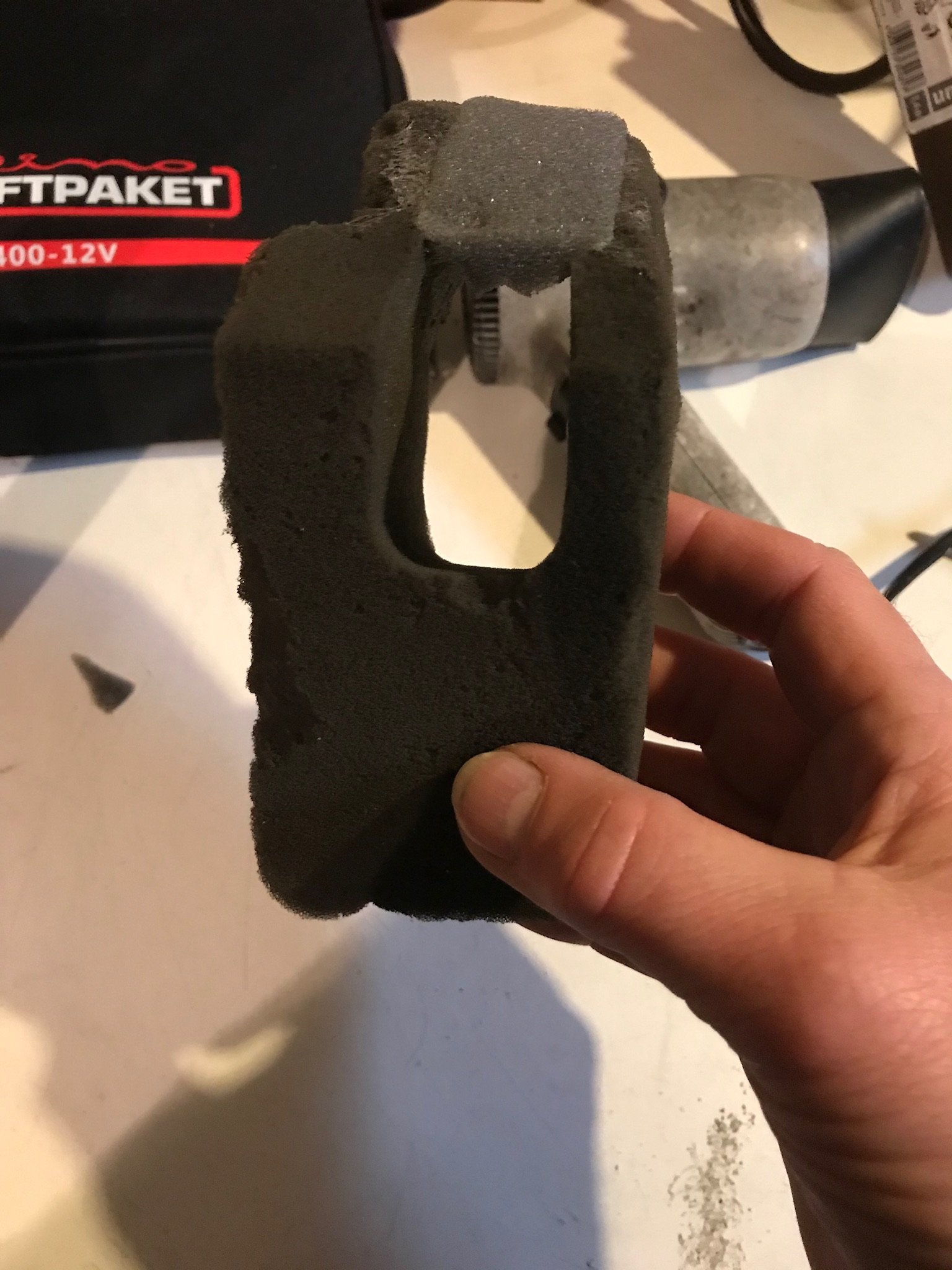 Das kommt nicht von mir und ich liebe Tiere. Übrigens habe ich dieses Schaumstoffteil repariert. Sprühkleber und Schaumstoff haben geholfen.