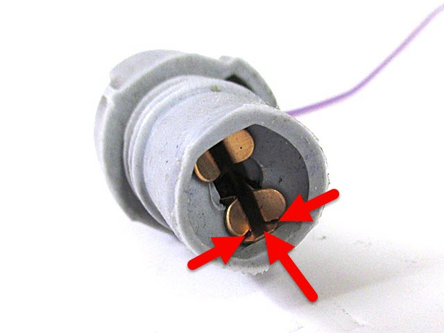 Der elektrische Anschluß wird durch einsteckern der Kontaktfahnen in die Lampenhalterung realisiert. Wenn man sich diesen Gummisockel man genau ansieht erkennt man das auch seitlich Kontakte vorhanden sind: