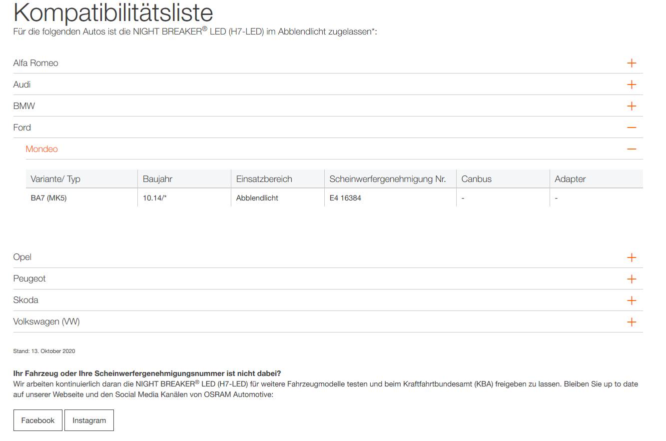 Bei unseren NIGHT BREAKER H7-LED ist das Hauptkriterium die E-Zulassungsnummer des Scheinwerfers. Die E-Nummer des Fahrzeuges an sich spielt eine untergeordnete Rolle.