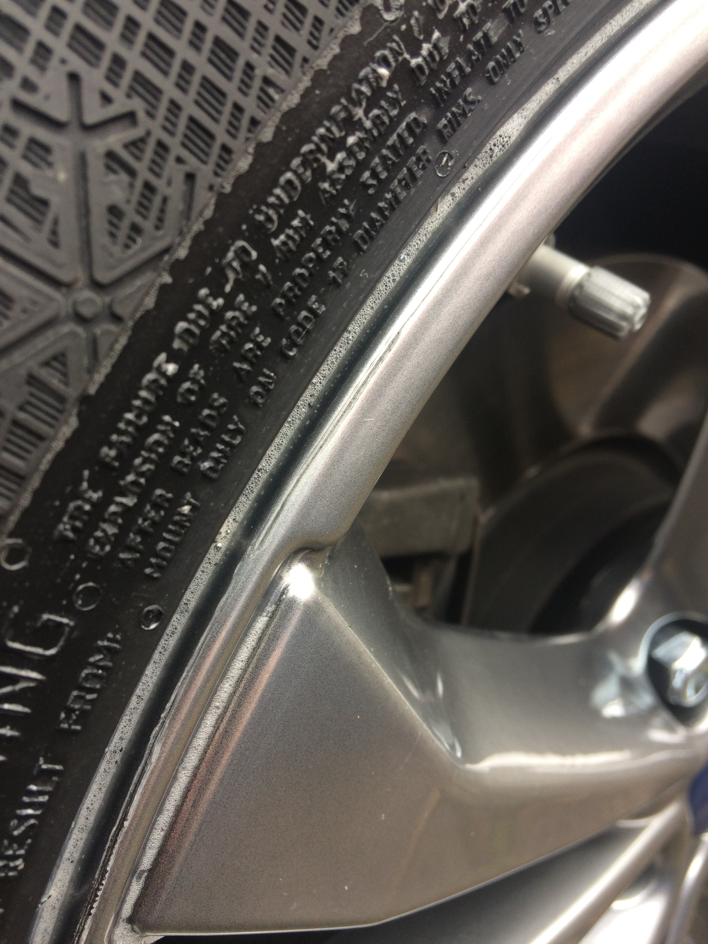 Dann habe ich in meiner Werkstatt die Reifen (neu) auf die Felgen (neu) aufziehen lassen. Zuhause wollte ich dann am nächsten Tag die Radmuttern nachziehen und die Felgen/Reifen von den Kleberesten befreien und da hat mich ja beinahe der Schlag getroffen!